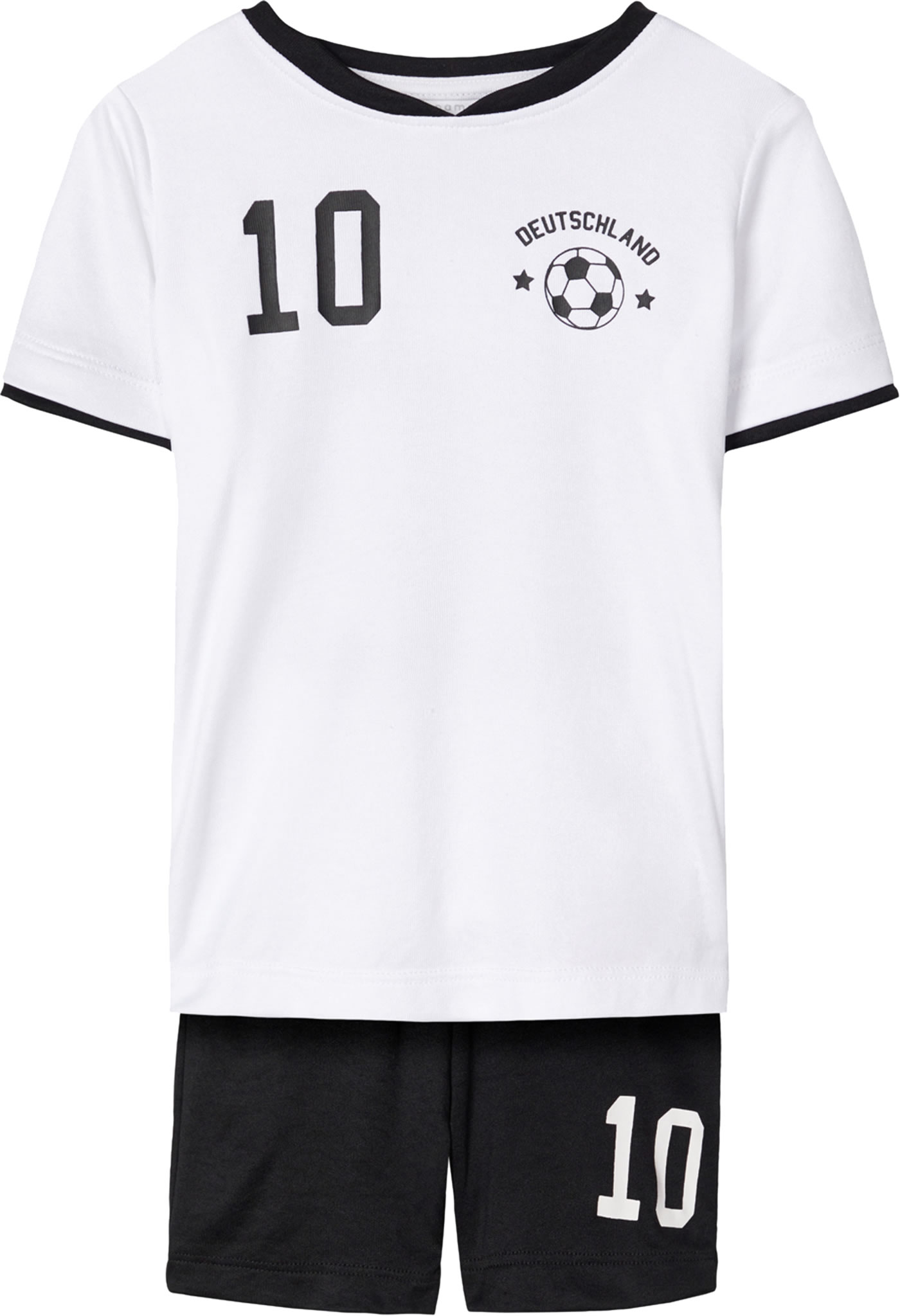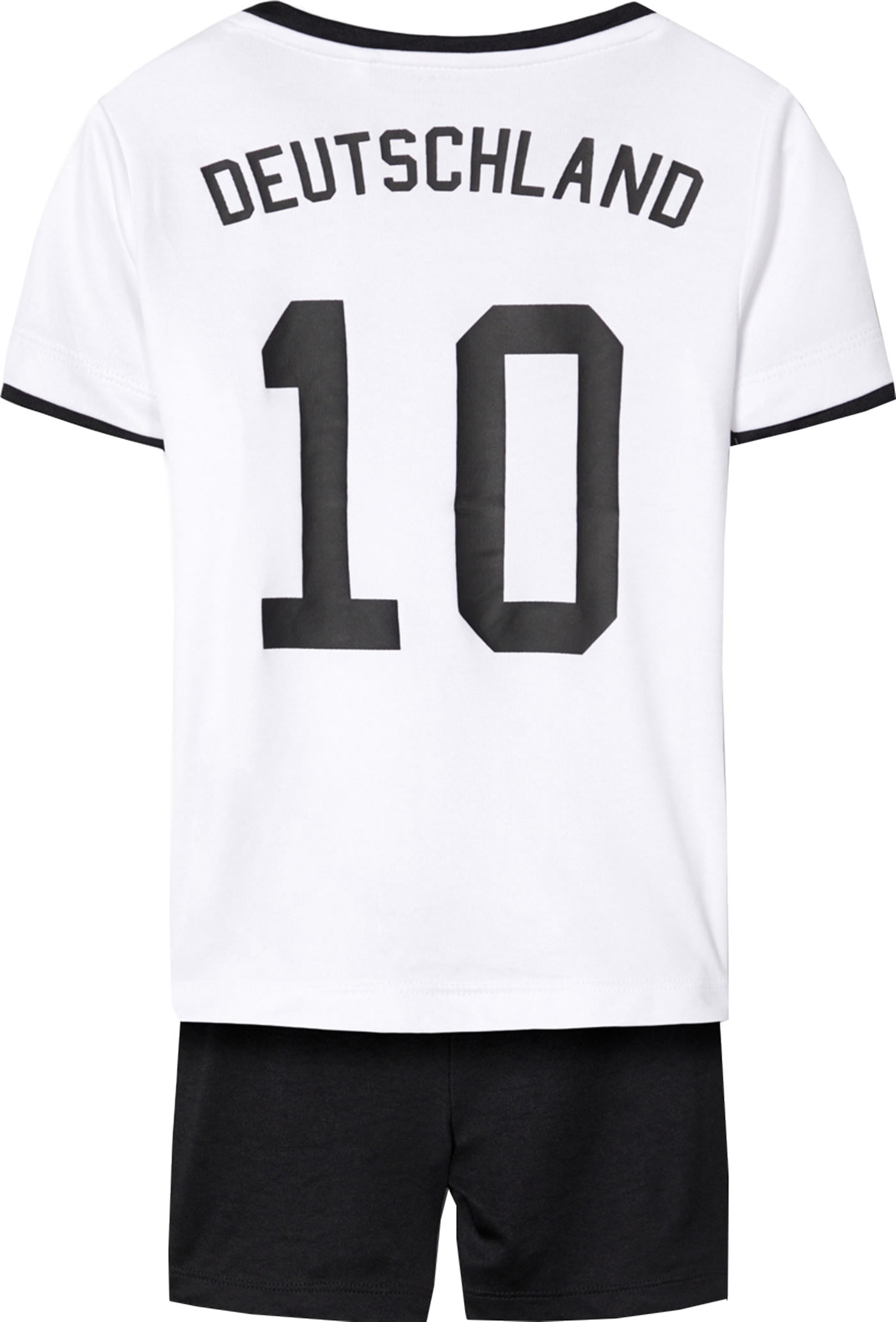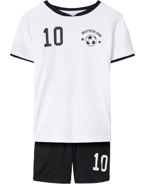 Set aus Fußball-Trikot und Shorts von name it. Das Shirt hat einen Deutschland Print auf Vorder- und Rückseite und natürlich die Nummer 10. Die Weite der Shorts ist im Bund regulierbar.