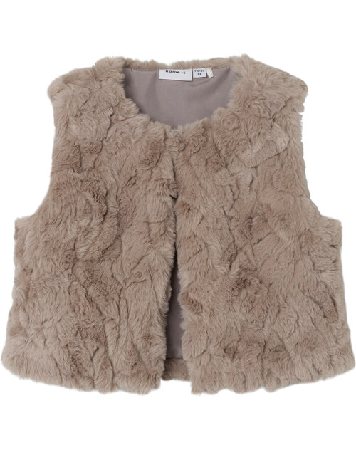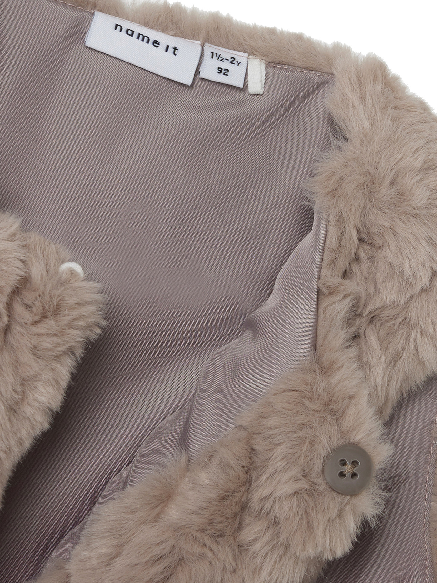 Hübsche Teddyplüsch-Weste von NAME IT für Mädchen. Diese niedliche Weste macht jedes Outfit zu einem Hingucker. Ein kleiner Knopf am Halsausschnitt sorgt für den richtigen Sitz der Weste.