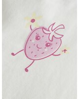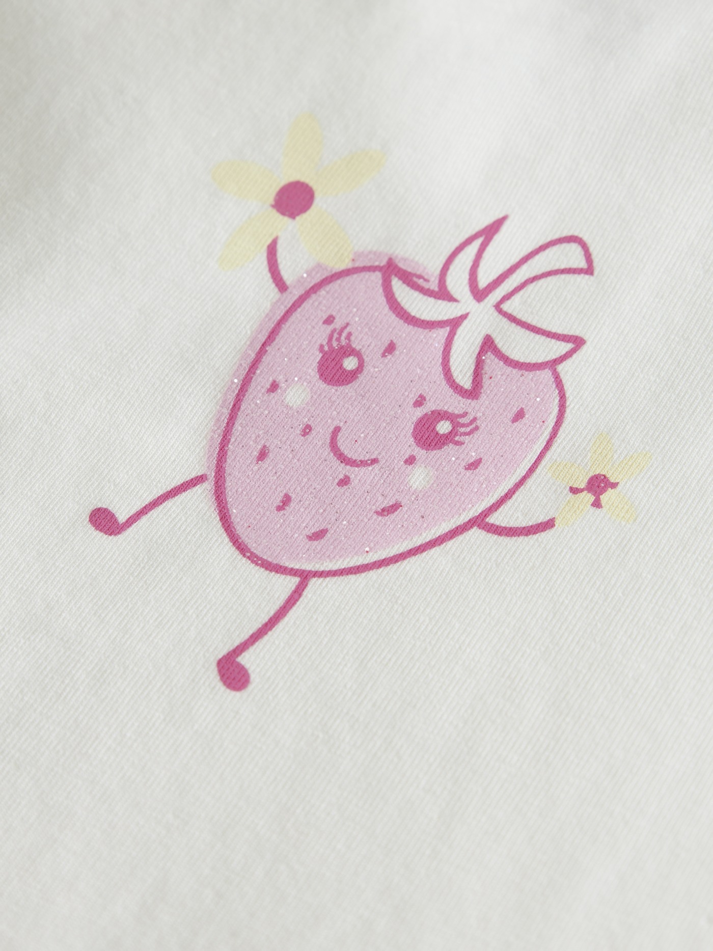 Der Blickfang ist der süße Aufdruck einer lächelnden Erdbeere auf der Vorderseite mit glitzernden Akzenten. 🍓✨