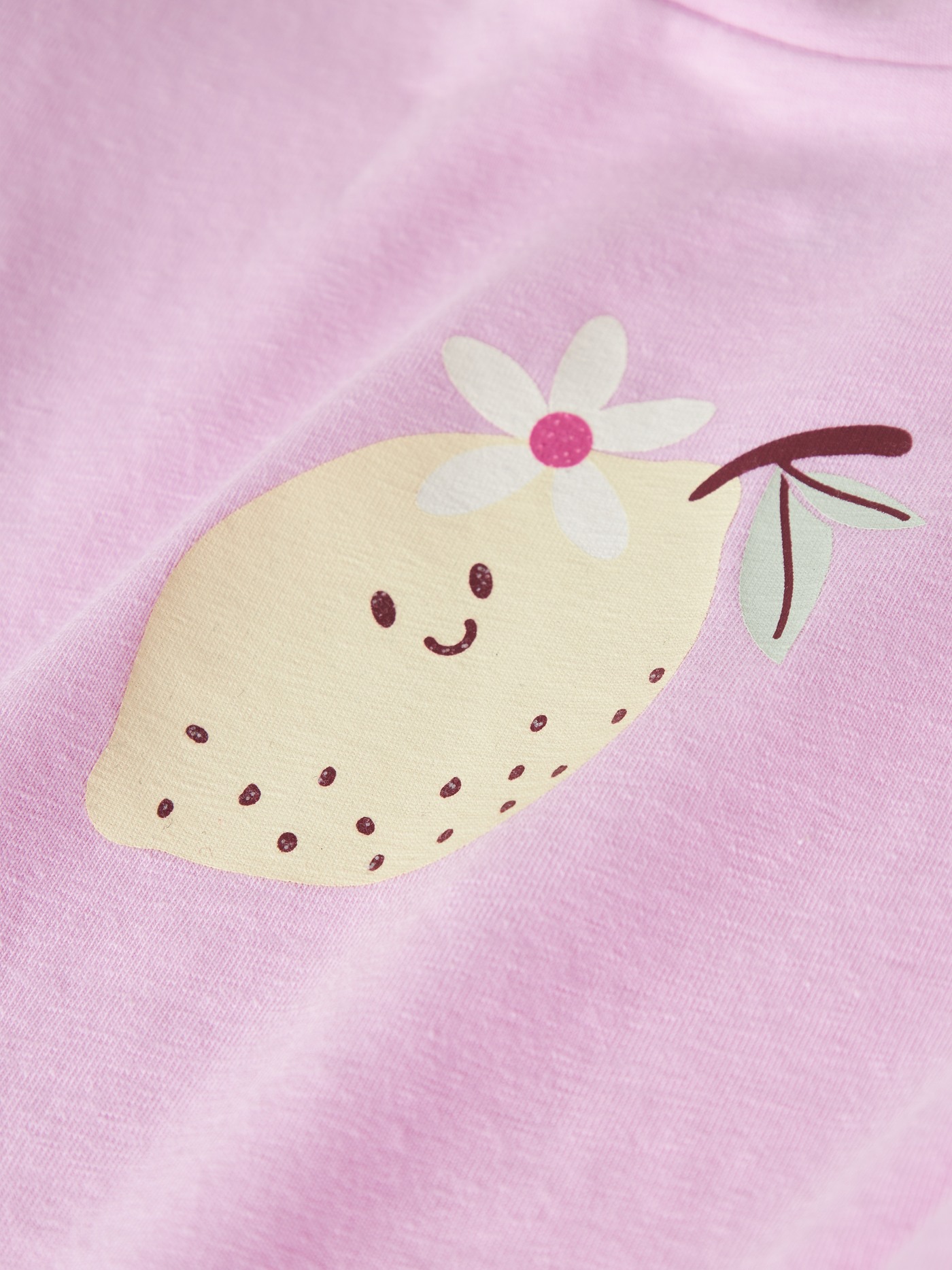 Der Blickfang ist der süße Aufdruck einer lächelnden Zitrone auf der Vorderseite mit glitzernden Akzenten. 🍋✨