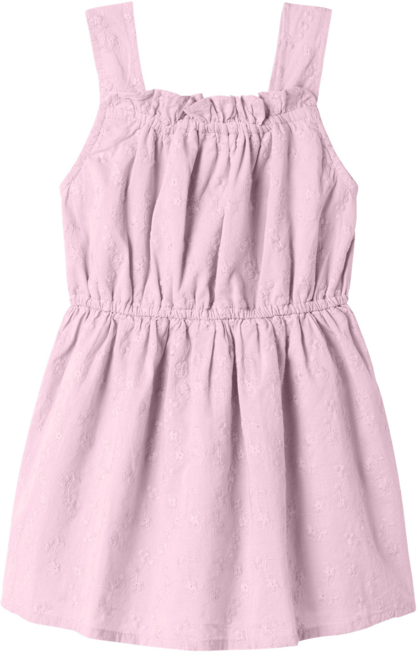 Hübsches Sommerkleid aus Bio-Baumwolle von Name it. Der weite und luftige Schnitt ist ideal für warme Sommertage. Besonders schön ist die Blumen-Stickerei auf dem gesamten Kleid. Gummizüge am Oberteil geben Halt und erleichtern das An-und Ausziehen. Das Kleid ist mit einem blickdichten Futter versehen. Das weiche Material bietet einen hohen Tragekomfort.