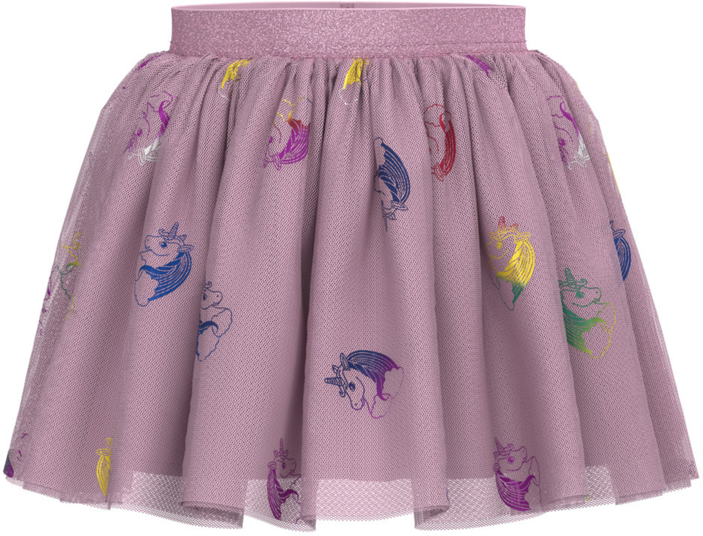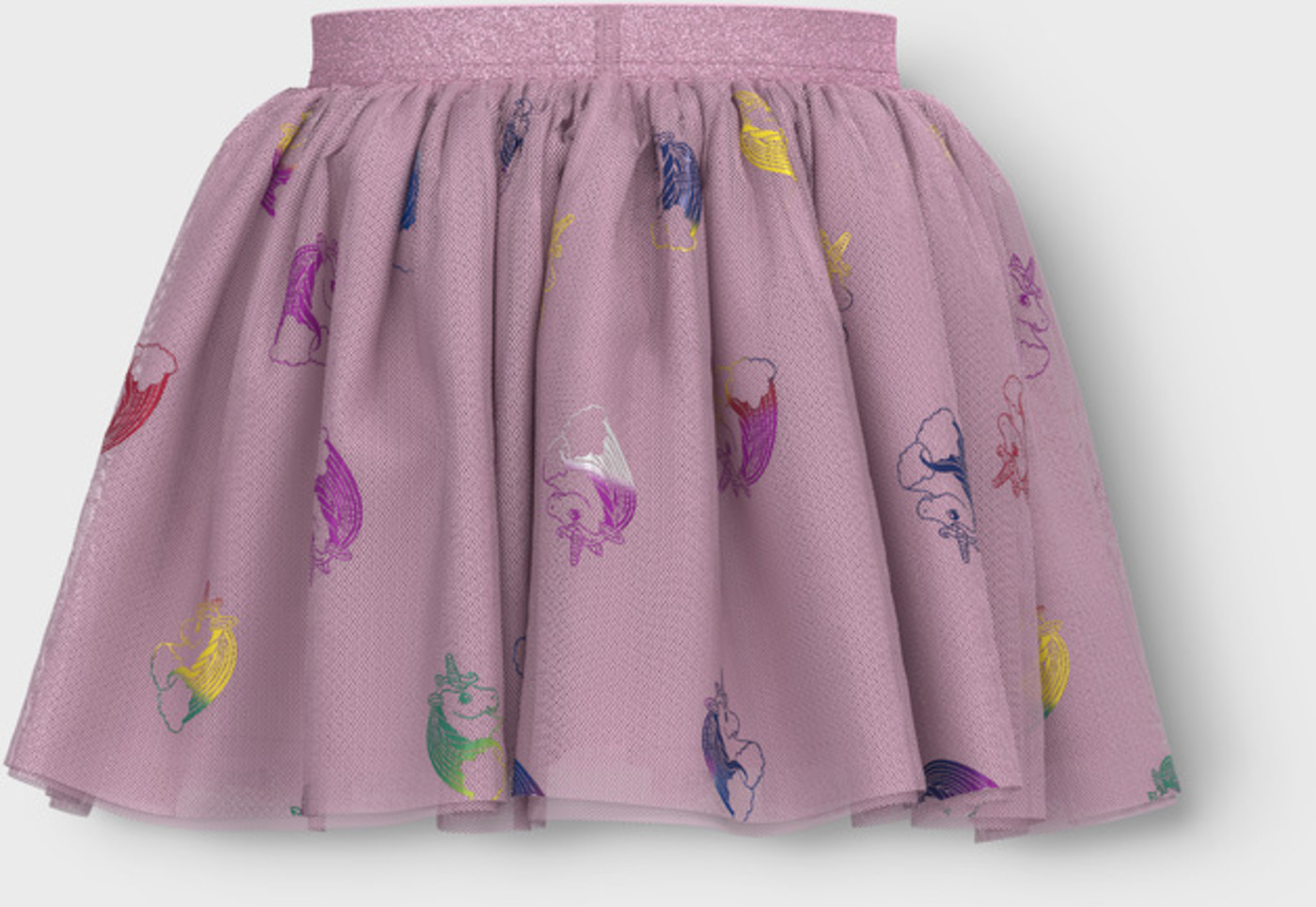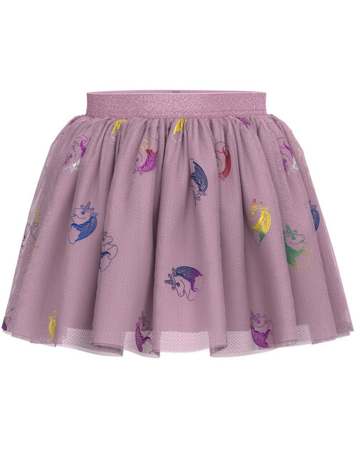 Weit fallender Tüll-Rock in rosa mit applizierten Glitzer-Einhörnern von NAME IT. Der Gummizugbund sorgt für einen guten Sitz. Mit Unterrock.
