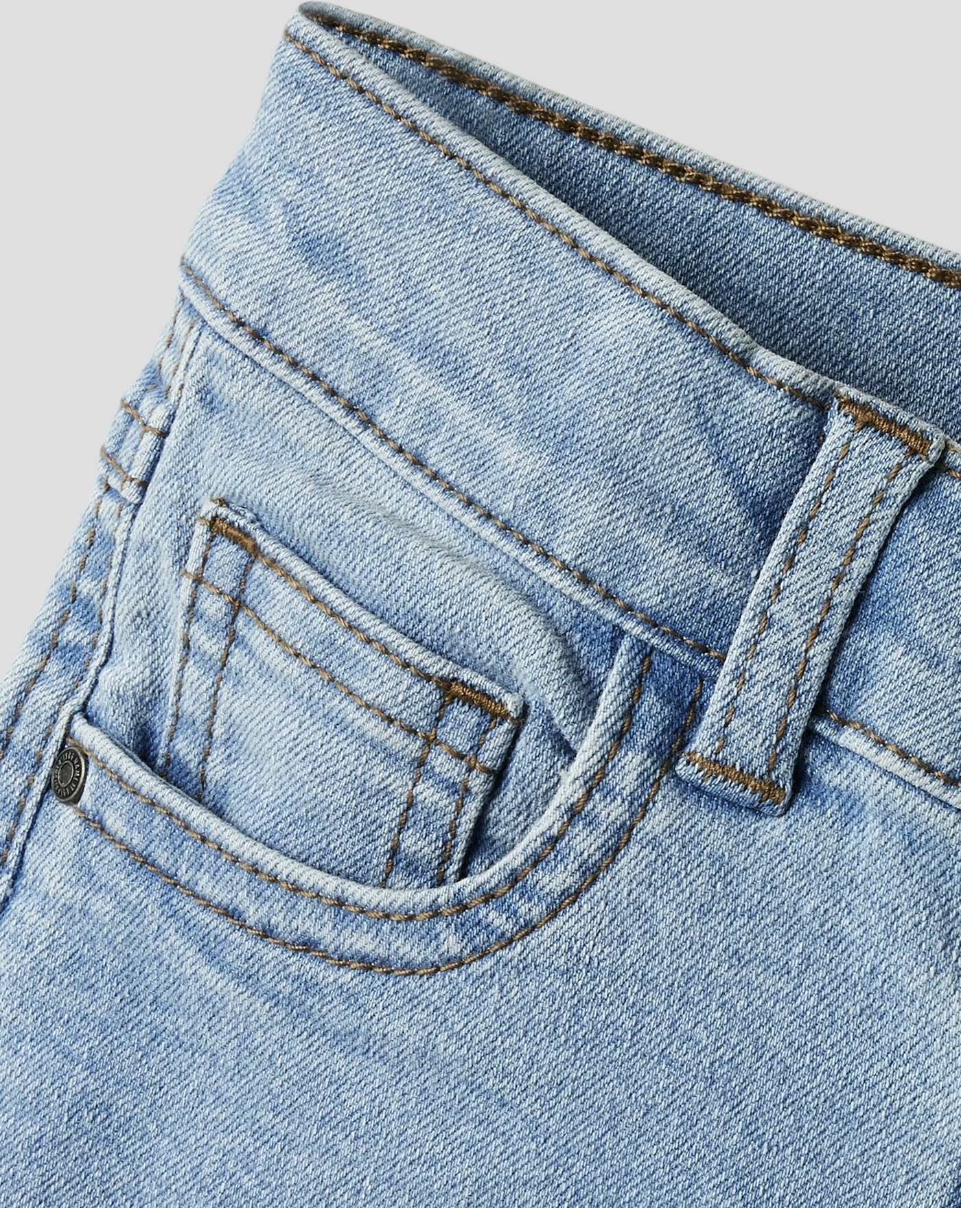 Nieten und der Druckknopfverschluss mit halbem Zierhosenschlitz unterstreichen den authentischen Jeansstil. 🙂