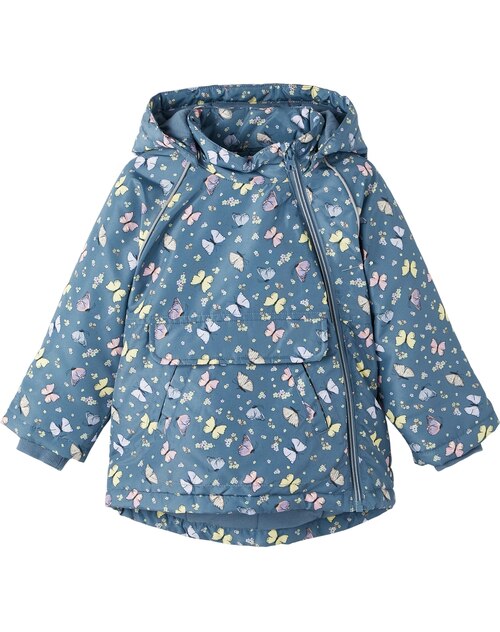 Warme Jacke NMFMICCO mit hübschem Schmetterlings-Print und abnehmbarer Kapuze von NAME IT für Mädchen.