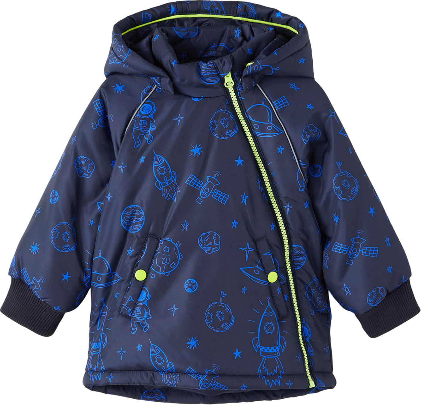 Warme Winter-Jacke NMMMICCO mit tollem Weltall Allover-Print und abnehmbarer Kapuze von NAME IT für Jungen.