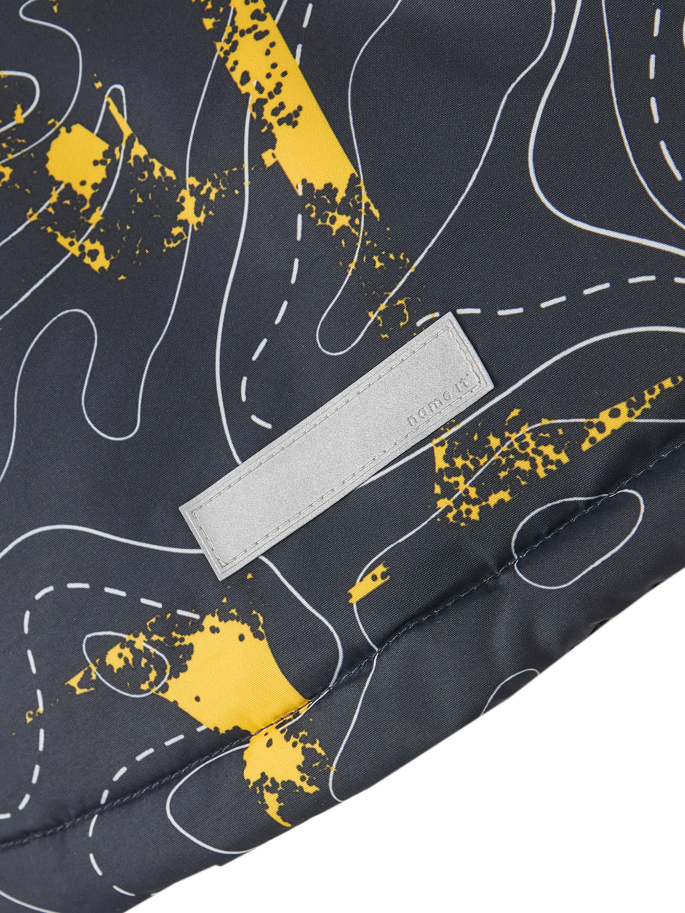 Wattierte Jacke mit Kapuze im coolen Design für Jungen von NAME IT. Zwei seitliche Taschen bieten Platz für Kleinigkeiten. Reflektierende Details sorgen für gute Sichtbarkeit an trüben Tagen. Die Kapuze ist abknöpfbar. Am Reißverschluss befindet sich ein Kinnschutz. In den Ärmeln sorgen Gummizug-Bündchen für einen guten Sitz.