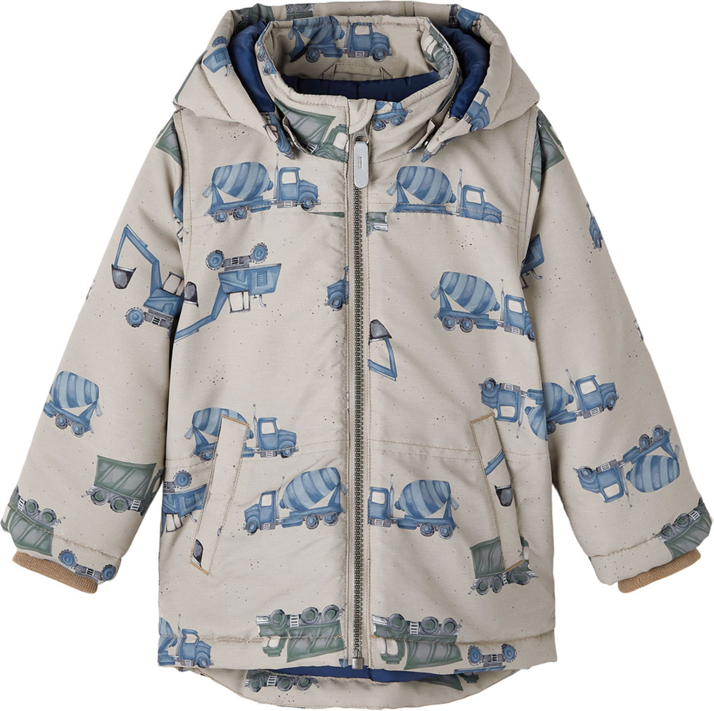 Wattierte Jacke mit Kapuze im coolen Design für Jungen von NAME IT. Zwei seitliche Taschen bieten Platz für Kleinigkeiten. Reflektierende Details sorgen für gute Sichtbarkeit an trüben Tagen. Die Kapuze ist abknöpfbar. Am Reißverschluss befindet sich ein Kinnschutz. In den Ärmeln sorgen Ripp-Bündchen für einen guten Sitz.