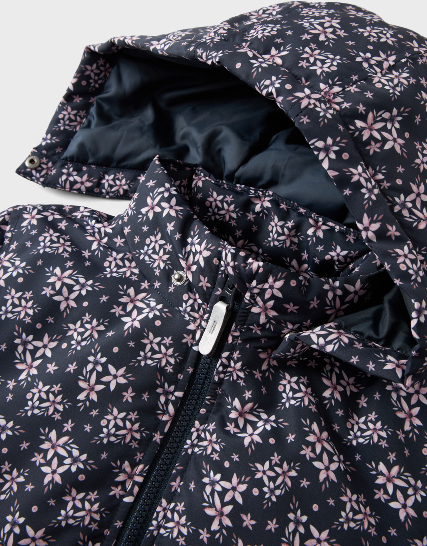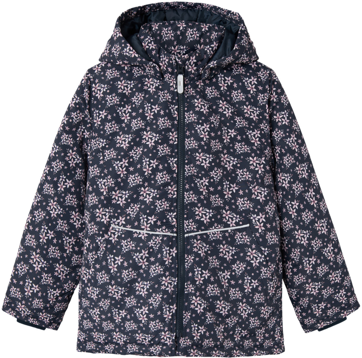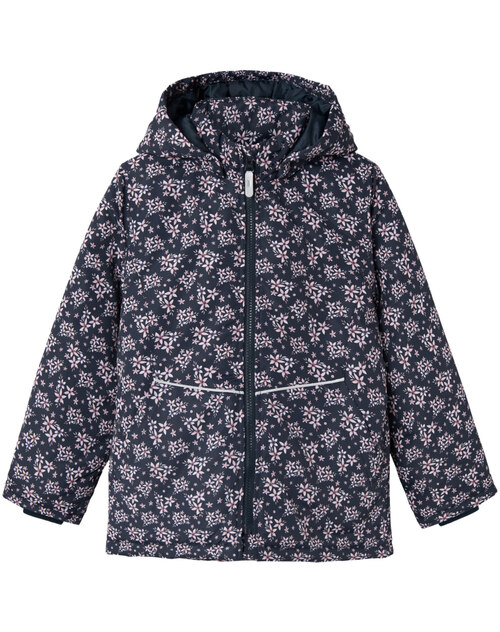 Wattierte Jacke mit Kapuze mit tollem Blumenmotiv für Mädchen von NAME IT. Zwei seitliche Taschen bieten Platz für Kleinigkeiten. Reflektierende Details sorgen für gute Sichtbarkeit an trüben Tagen. Die Kapuze ist abnehmbar. Am Reißverschluss befindet sich ein Kinnschutz. In den Ärmeln sorgen Ripp-Bündchen für einen guten Sitz. Im Rückenteil ist die Jacke leicht gerafft. Die ECO Imprägnierung basiert auf einer fluorfreien Rezeptur und hält die Farbe und das Gewebe länger neu.