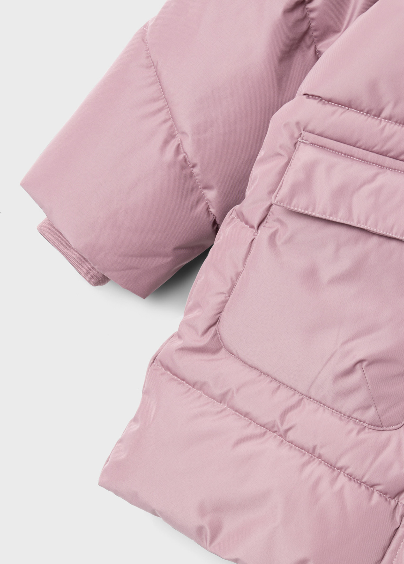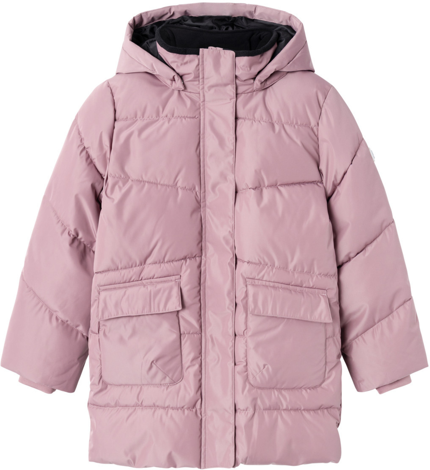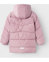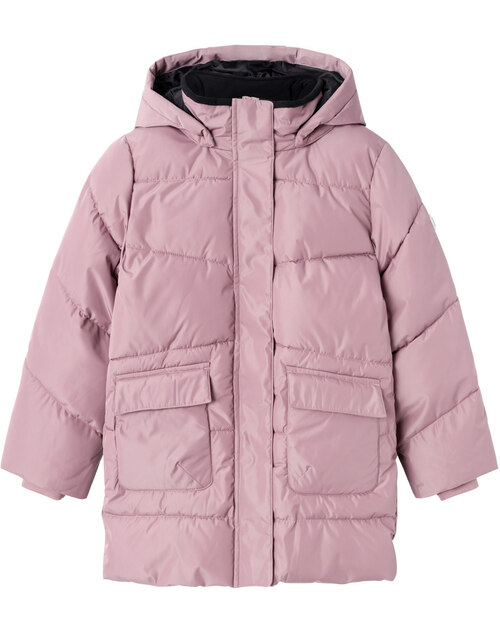 Wattierte Jacke mit Kapuze für Mädchen von NAME IT. Zwei Taschen bieten Platz für Kleinigkeiten. Reflektierende Details sorgen für gute Sichtbarkeit an trüben Tagen. Die Kapuze ist abknöpfbar. Am Reißverschluss befindet sich ein Kinnschutz. In den Ärmeln sorgen Ripp-Bündchen für einen guten Sitz. Die Bionic-Finish ECO Imprägnierung basiert auf einer fluorfreien Rezeptur und hält die Farbe und das Gewebe länger neu.