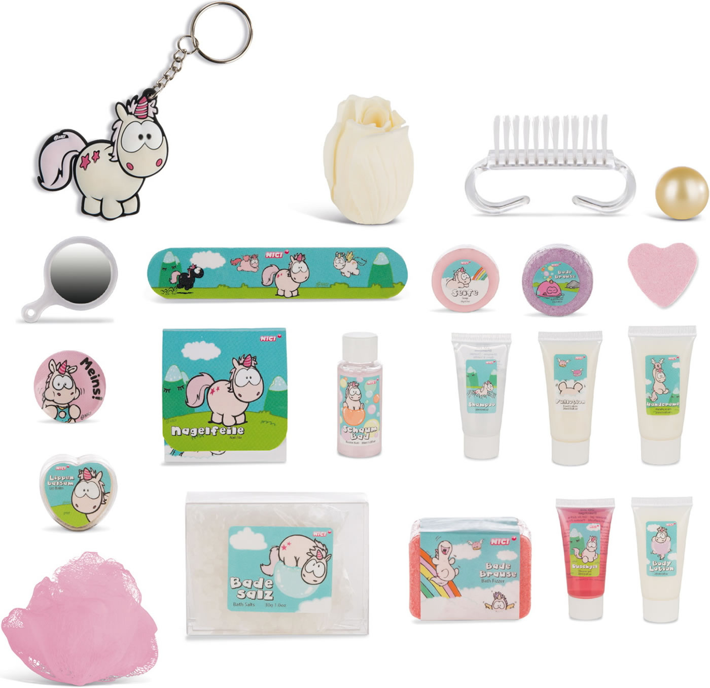 In diesem Adventskalender entdeckst du hinter den 24 Türchen viele tolle Kosmetik- und Badeartikel.