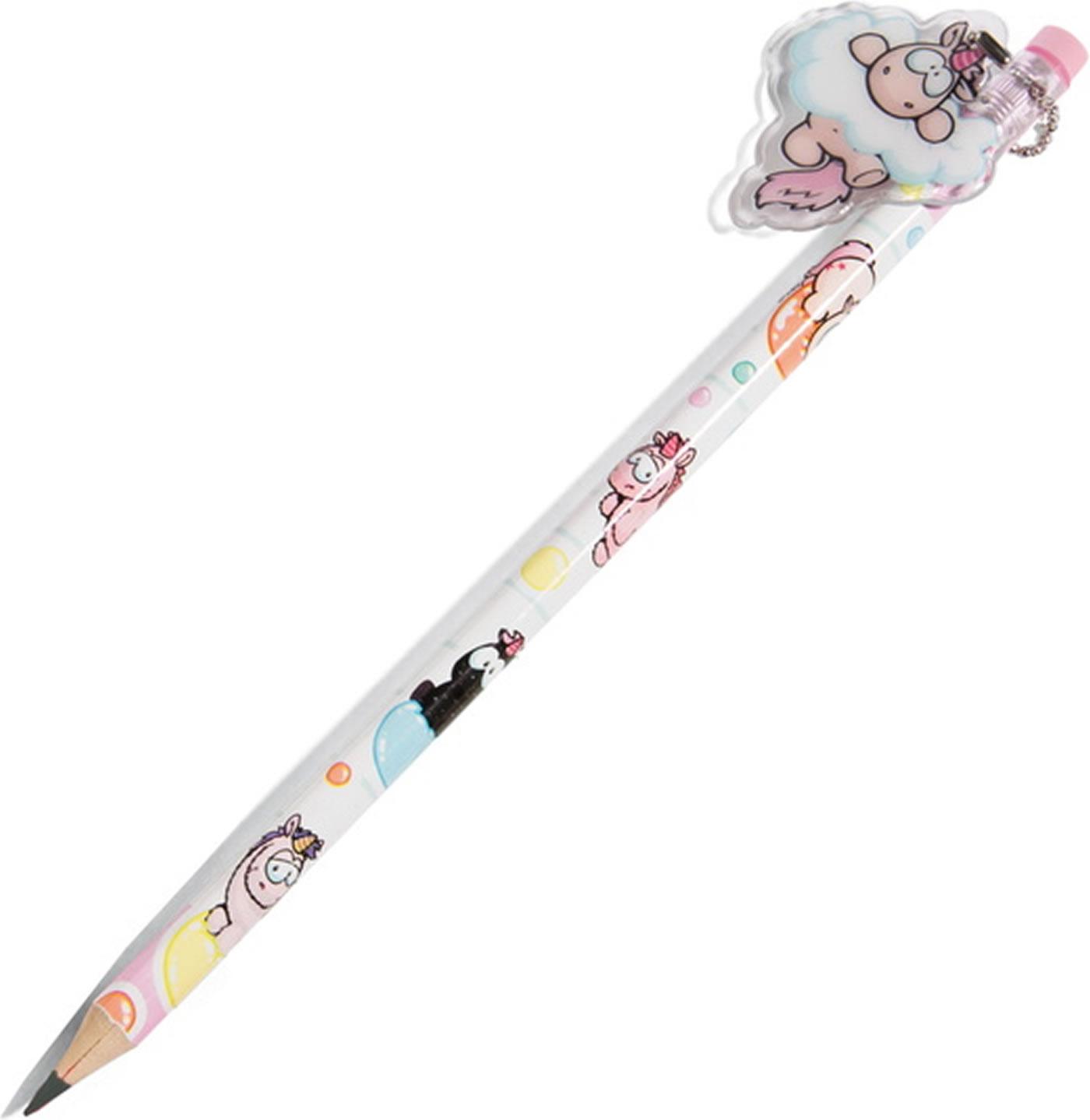 Der Bleistift hat ein Radiergummi und einen niedlichen Einhorn-Anhänger.