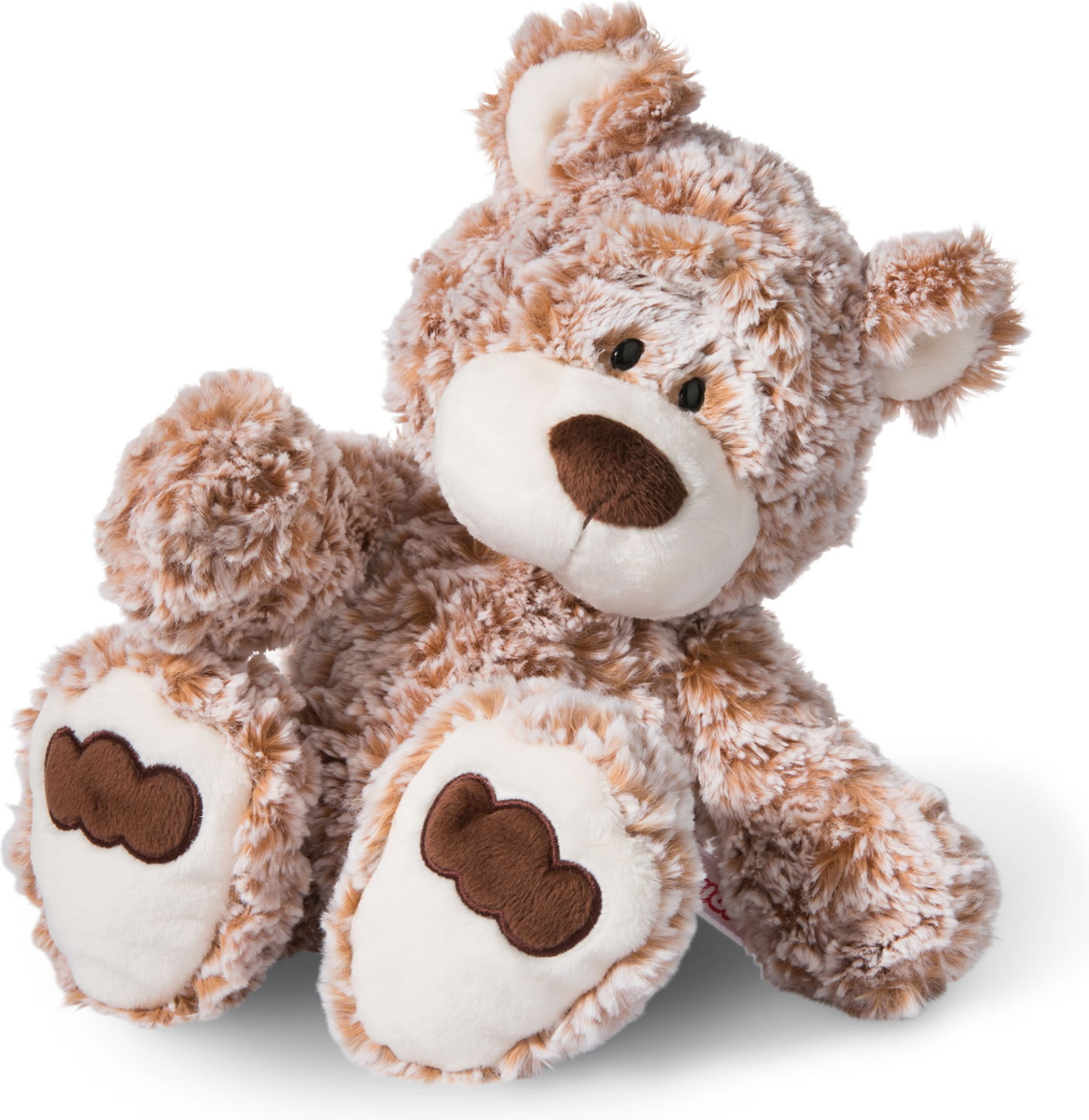 Das zweifarbige Fell ist kuschelweich und verleiht Daddy-Bär einen tollen Look. Mit seinem freundlichen Gesicht und der Stupsnase wird er schnell zum besten Freund.