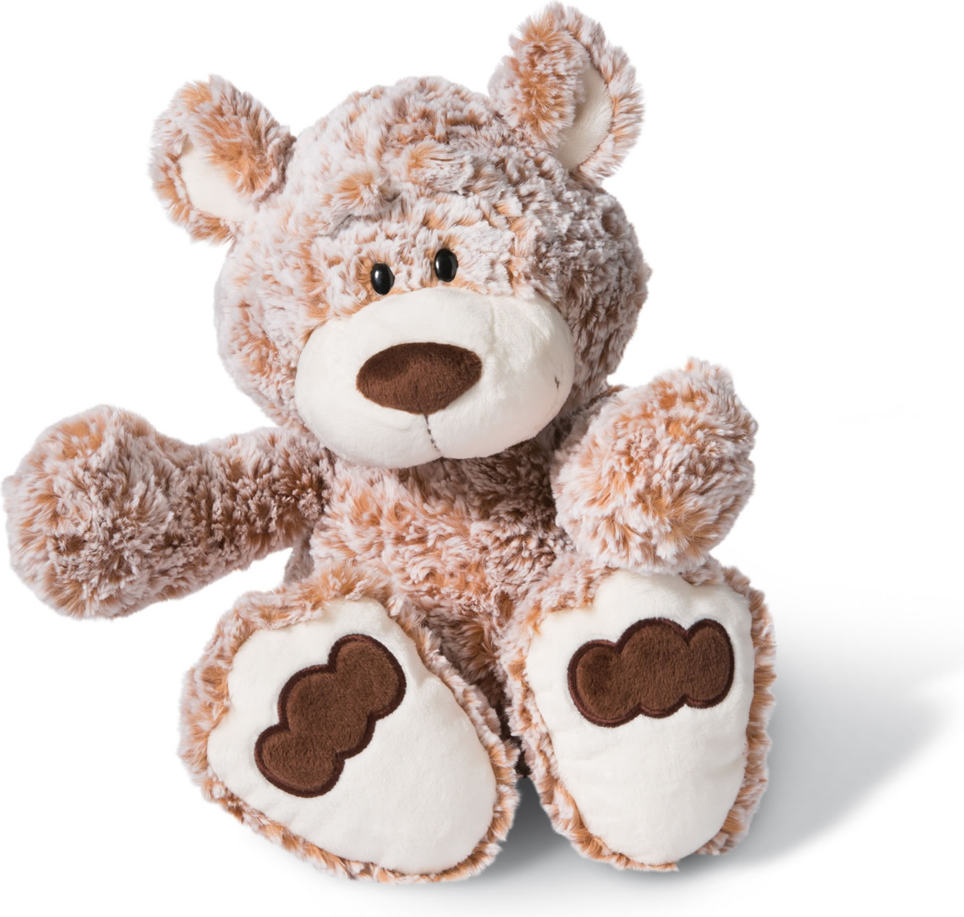 Das zweifarbige Fell ist kuschelweich und verleiht Daddy-Bär einen tollen Look. Mit seinem freundlichen Gesicht und der Stupsnase wird er schnell zum besten Freund.