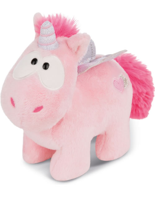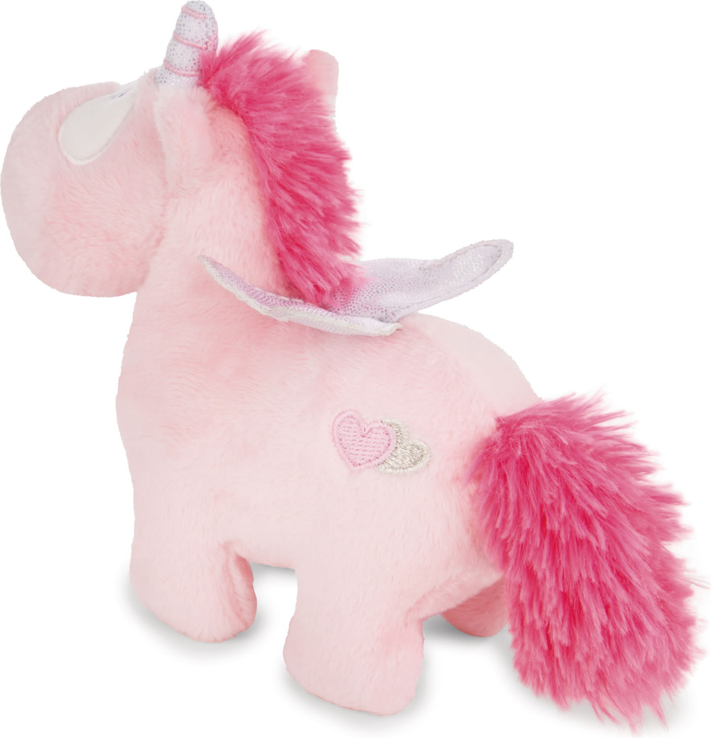 Das Einhorn Pink Harmony hat silbern schimmernde Herz-Flügel, pinkfarbene Mähne und Schweif und auf seimem Rücken befindet sich eine Herz-Applikation.