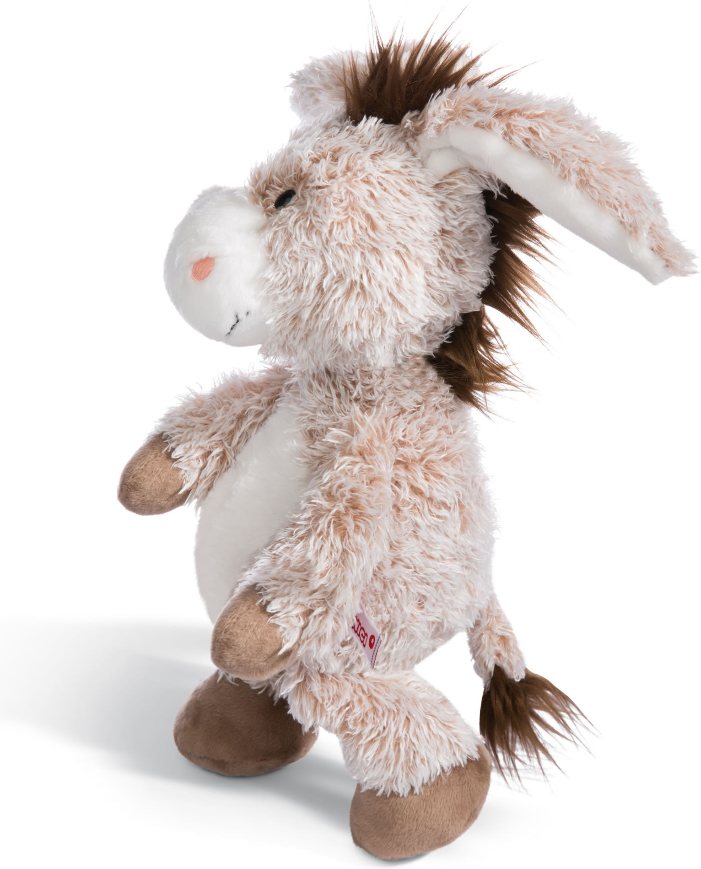 Sein interessantes Aussehen erhält der Esel durch den zweifarbigen Plüsch. Er ist kuschelig weich und seine schwarzen Knopfaugen und die langen Ohren machen ihn zu einem Lieblings-Kuscheltier.