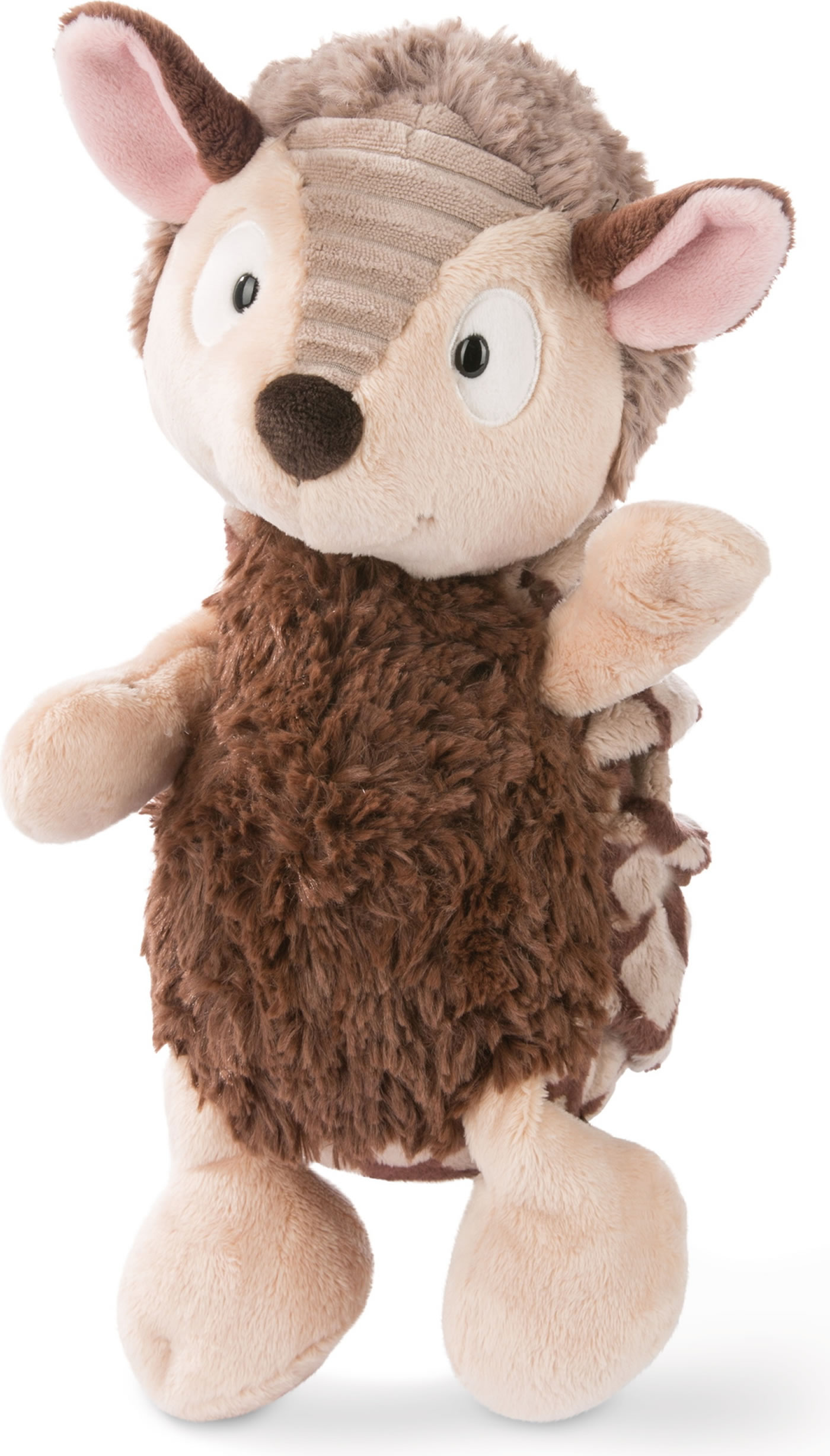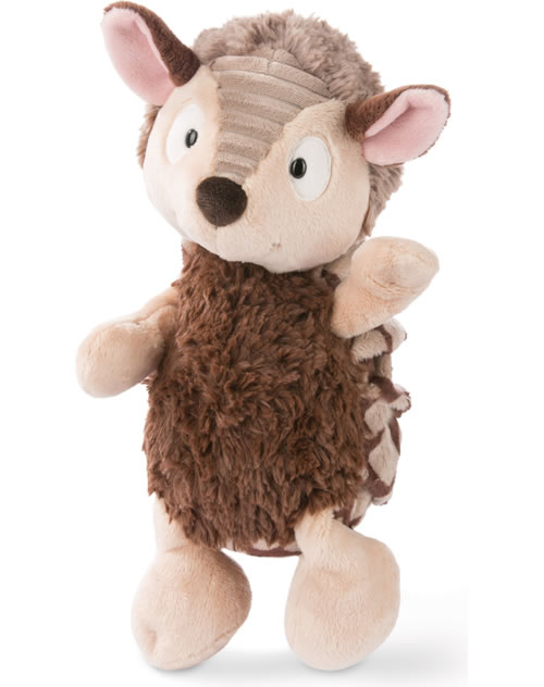 Gürteltier Armin ist kuschelig weich und schlägt jeden mit seinen großen Augen in den Bann. Besonders schön ist das mehrfarbige Fell, das auf dem Rücken in Falten gelegt ist, um den Panzer des Gürteltiers abzubilden.