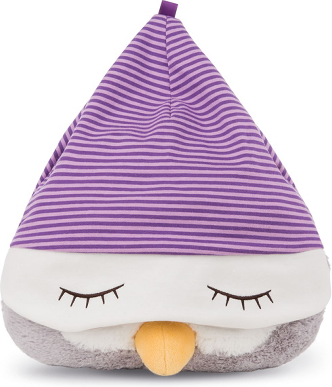 Einfach die Schlafmaske über die Augen der Schlafmütze ziehen und schon begleitet das süße Plüschtier ihr Kind auf seiner Reise ins Land der Träume.