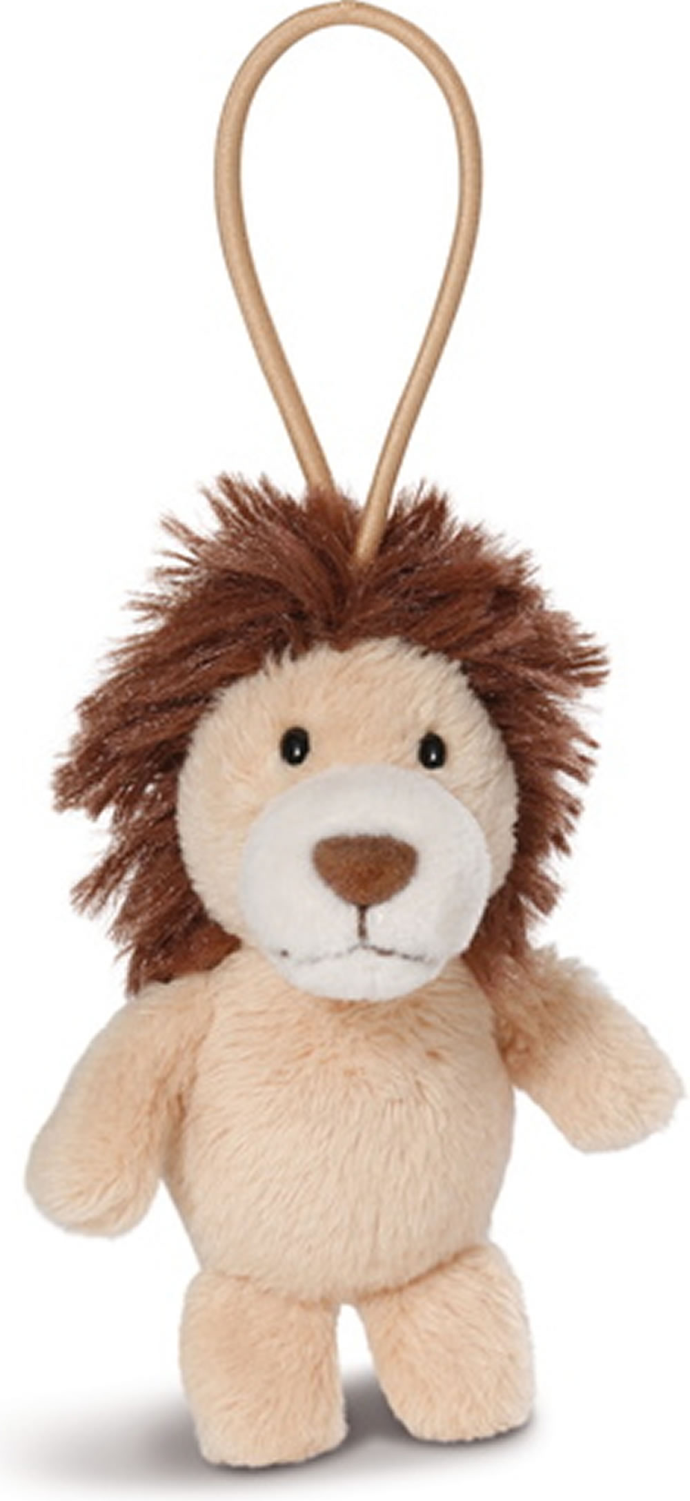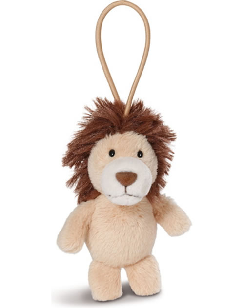 Mit der elastischen Schlaufe läßt sich der Löwe leicht an Taschen oder Rucksäcken befestigen.