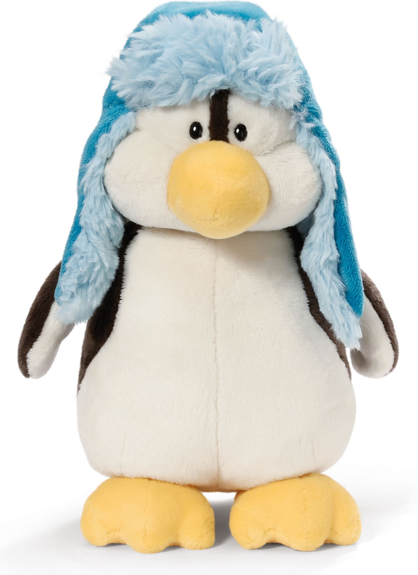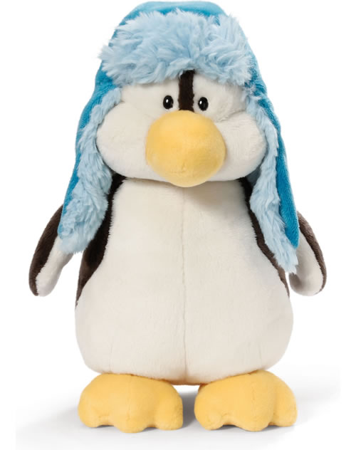 Der Pinguin ist ein kuscheliger Begleiter. Seine blaue Mütze schützt ihn vor der Kälte.
