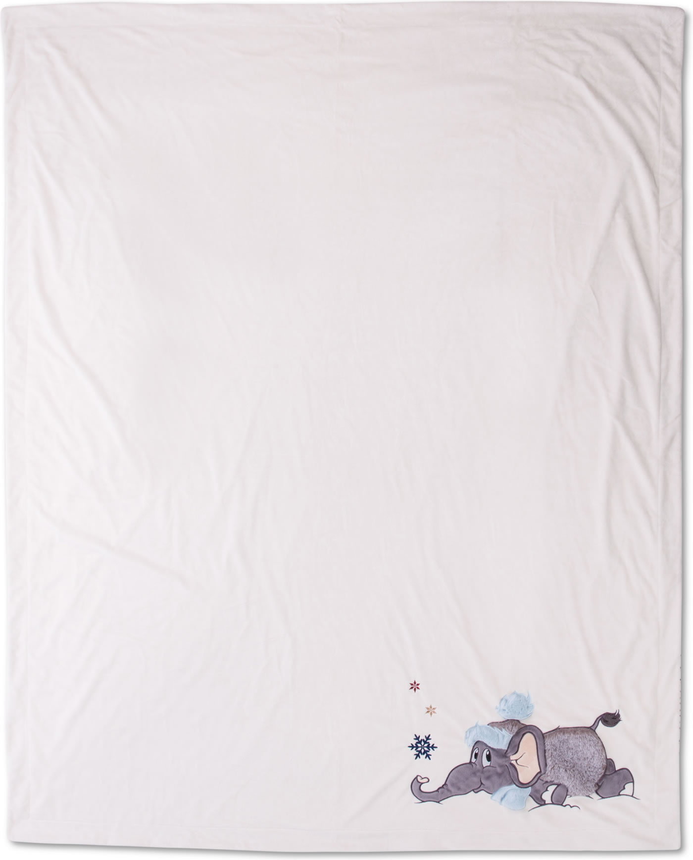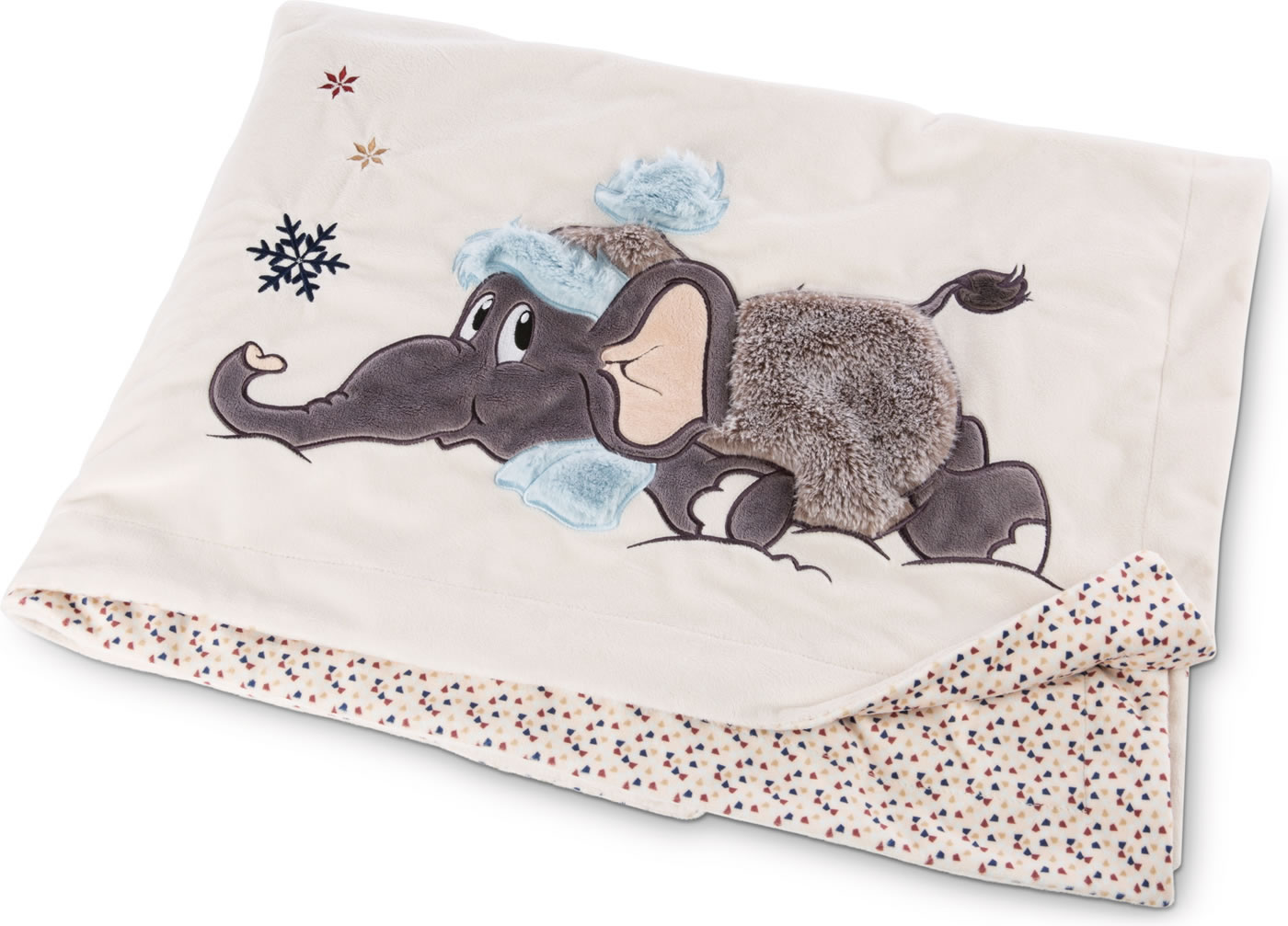 Wenn es draußen kalt ist, ist diese kuschelig weiche Decke genau richtig. Besonders schön sind die Applikation mit dem Elefanten Amadou mit 3D-Elementen und die Rückseite im Konfetti-Design.