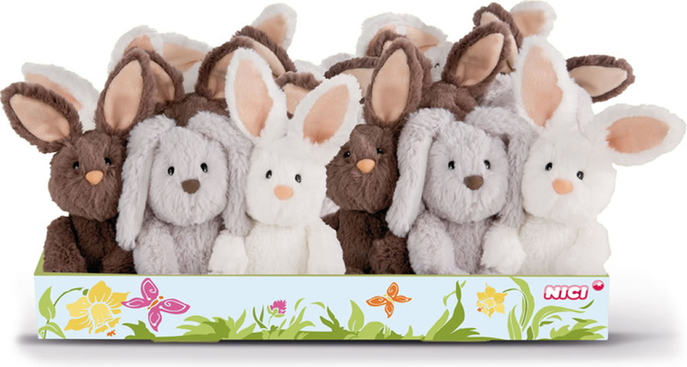 Den niedlichen Hasen git es in drei Farben. Er ist kuschelig weich und hat extra große Ohren.