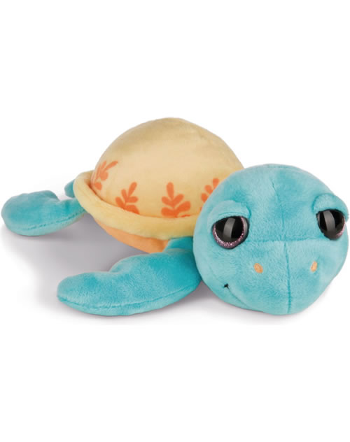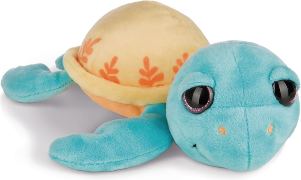 Die Schildkröte ist kuschelig weich und die lila Augen glitzern.