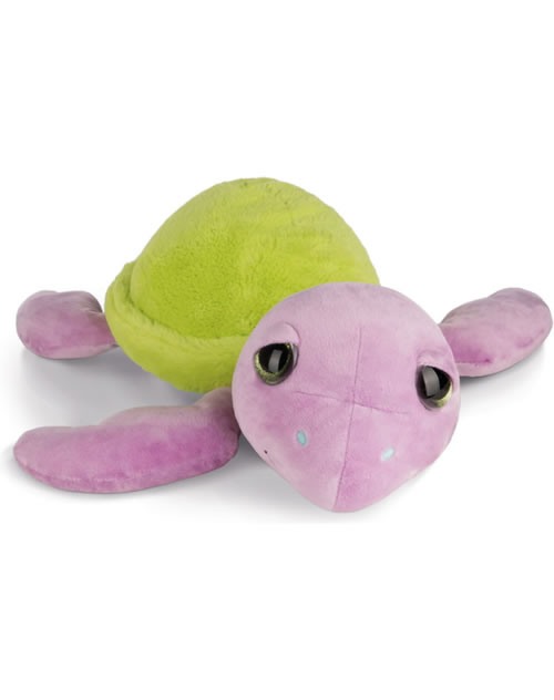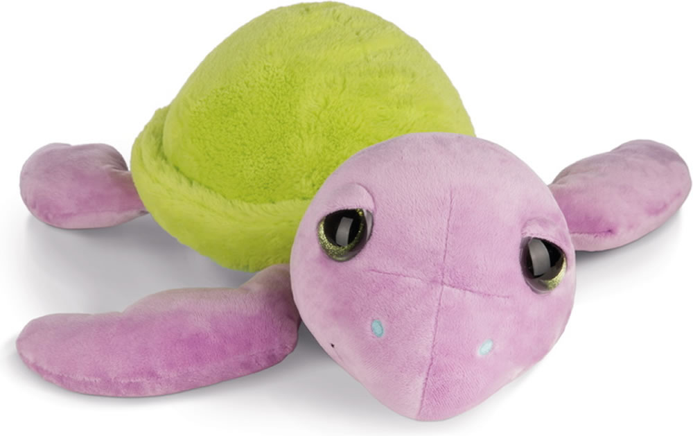 Die Schildkröte ist kuschelig weich und die grünen Augen glitzern.
