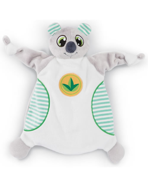 Der kleine Koala bringt jedes Kind zum Einschlafen. Wird die Mütze des Koalas hocklappt sind die Augen offen, wird sie heruntergeklappt, schließen sich die Augen.