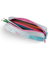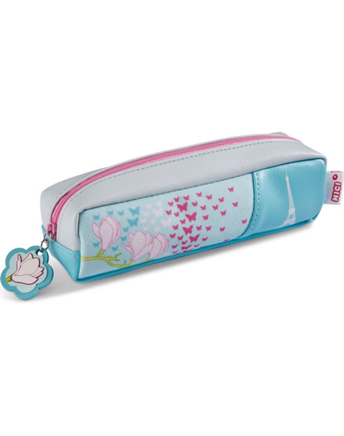 Tolles Stiftemäppchen für die Schule. Am Reißverschluss befindet sich ein Magnolien-Anhänger und innen ist das Mäppchen pink und bietet Platz für deine Stifte.