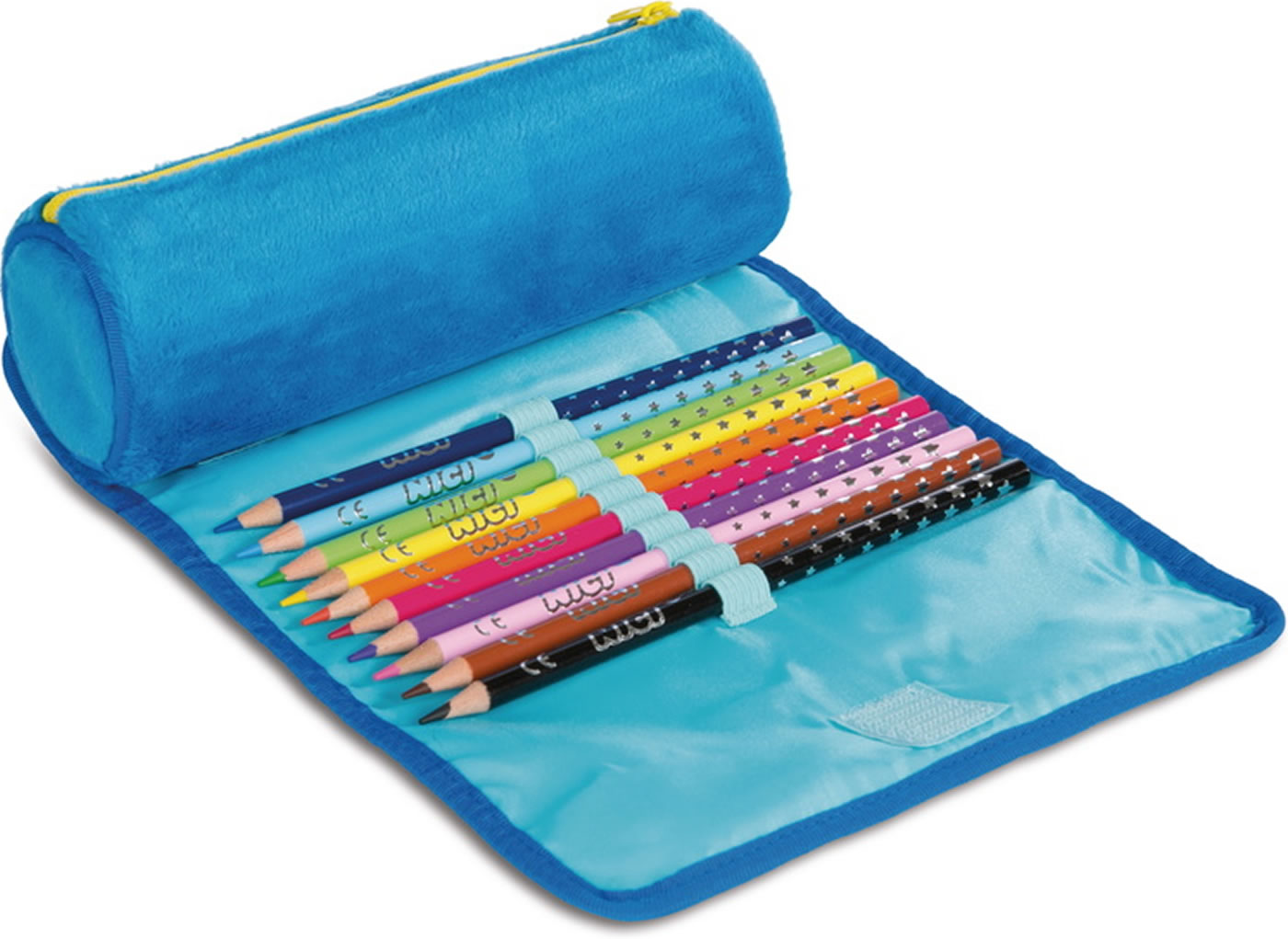 Diese coole Federmappe zum Rollen mit herausnehmbarer Schlamperrolle beinhaltet 10 Buntstifte.