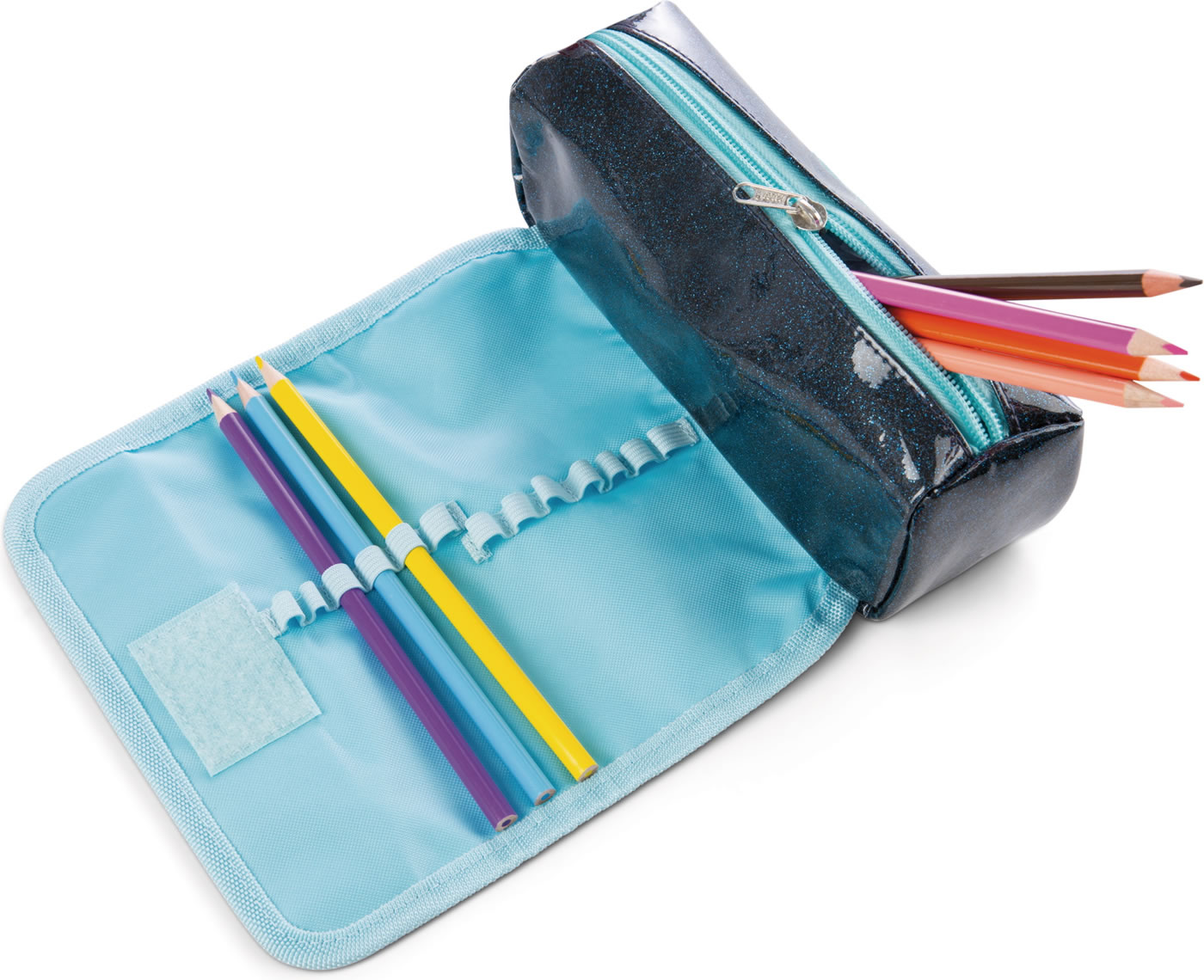 Das Stiftemäppchen mit winterlichem Motiv bietet viel Platz für Stifte und anderes Schulzubehör. Im Inneren befinden sich zudem noch Stiftehalter.