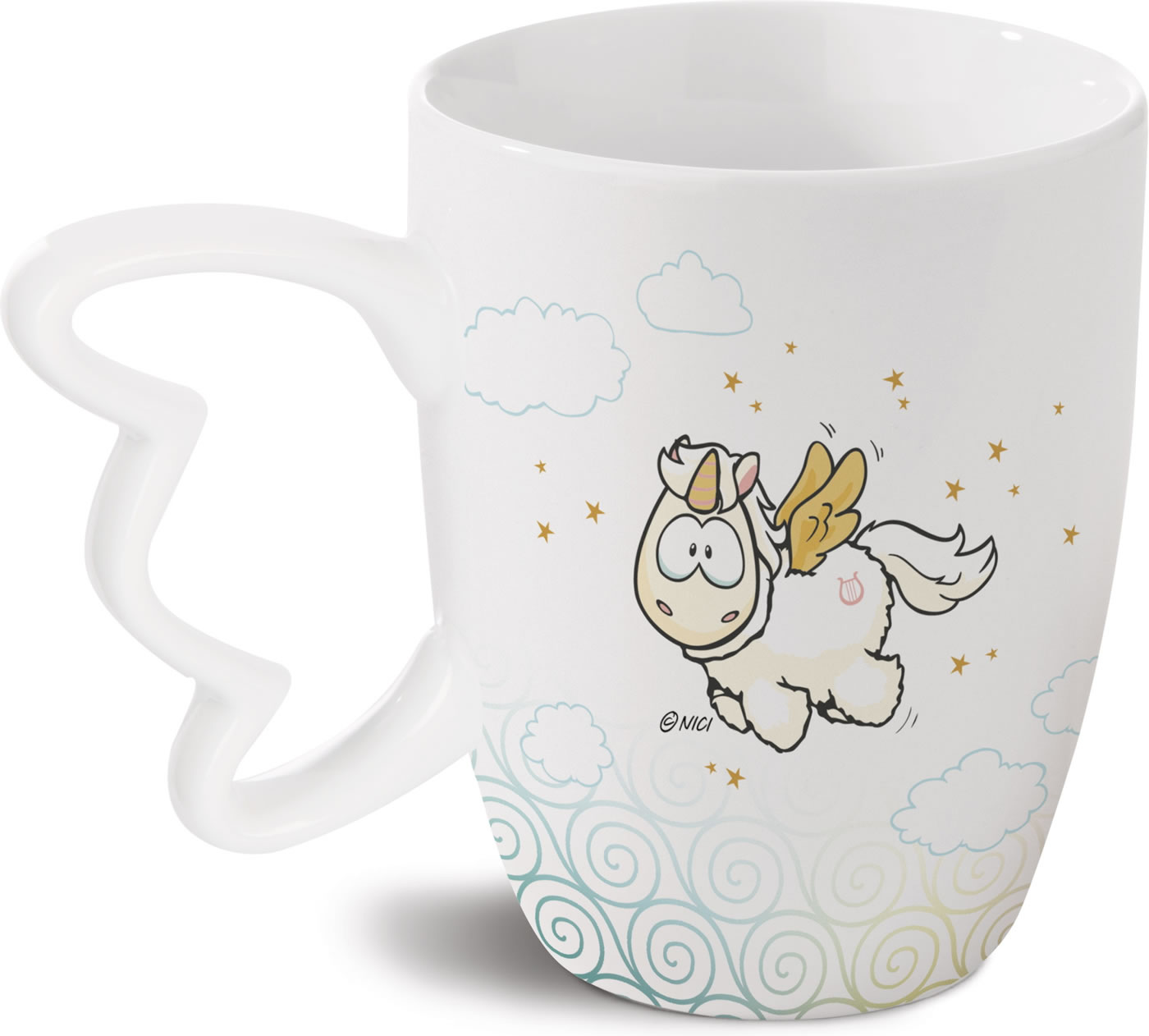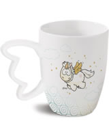 Tolle Tasse mit dem Engel-Einhorn Angelia. Ein schönes Detail ist der Henkel in Flügelform.