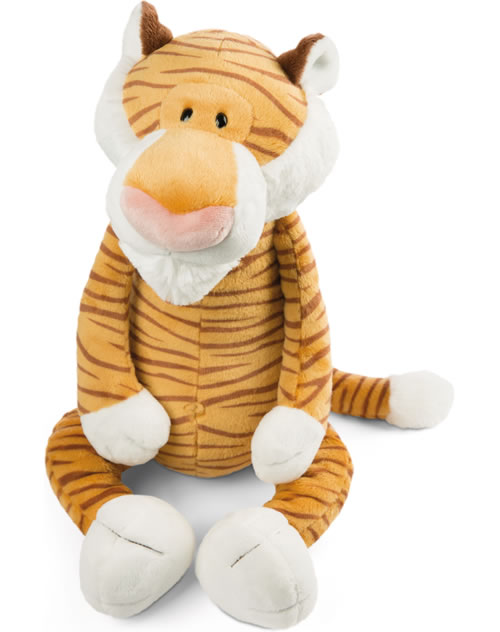 Mit ihrem weichen Fell und dem gstreiften Muster wird Tiger-Lilly schnell zum Lieblingskuscheltier. Besonders schön sind die weiße Mähne und die rosa Stupsnase.