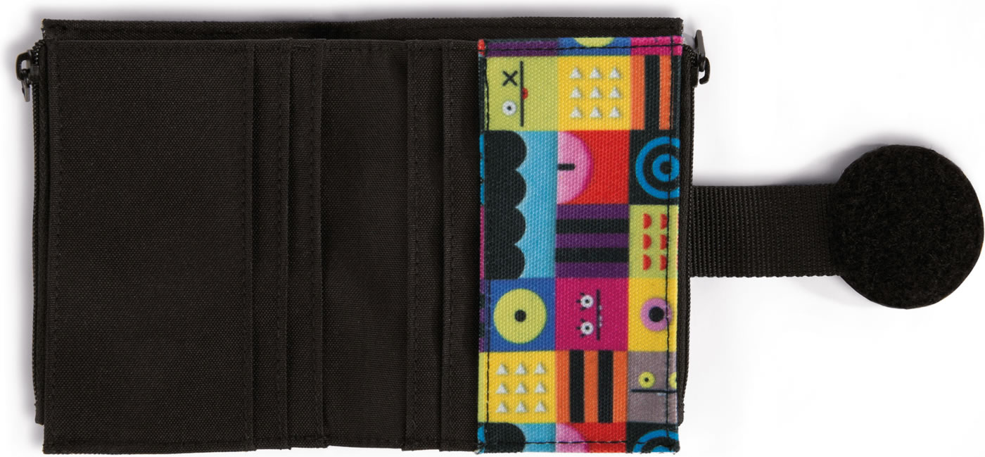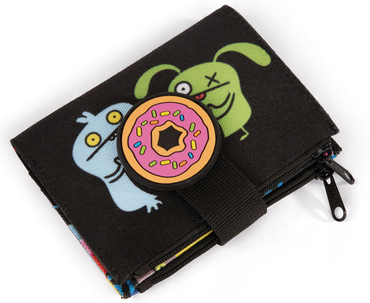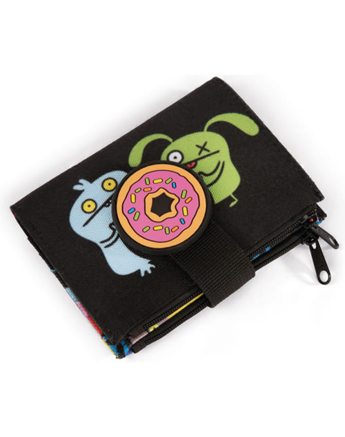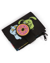 Praktisches Portmonee mit den Monstern Ugly Dolls. Die Geldbörse hat einen Klettverschluss. Mehrere Fächer bieten Platz für Karten und Scheine und für die Münzen stehen zwei Fächer zur Verfügung.