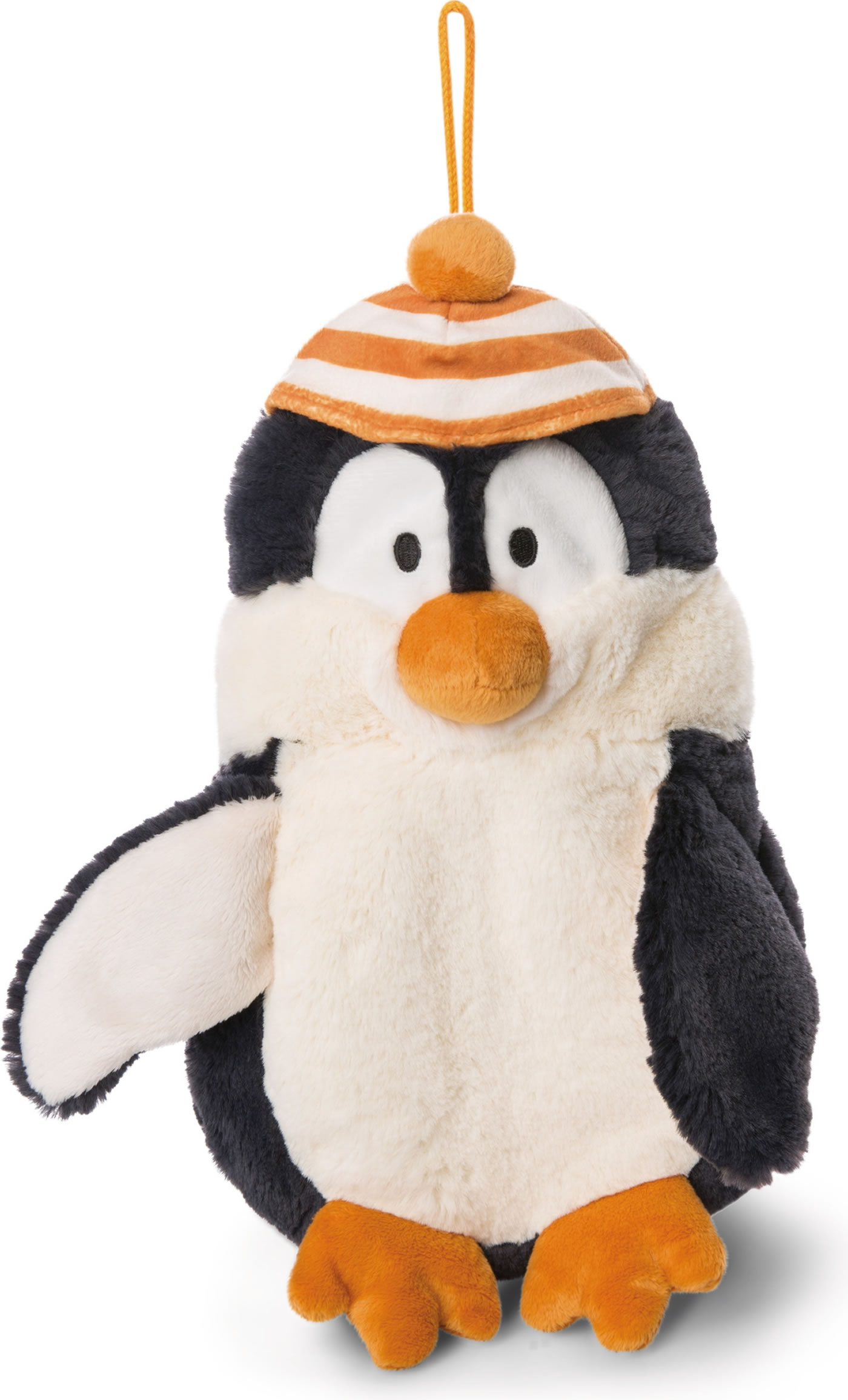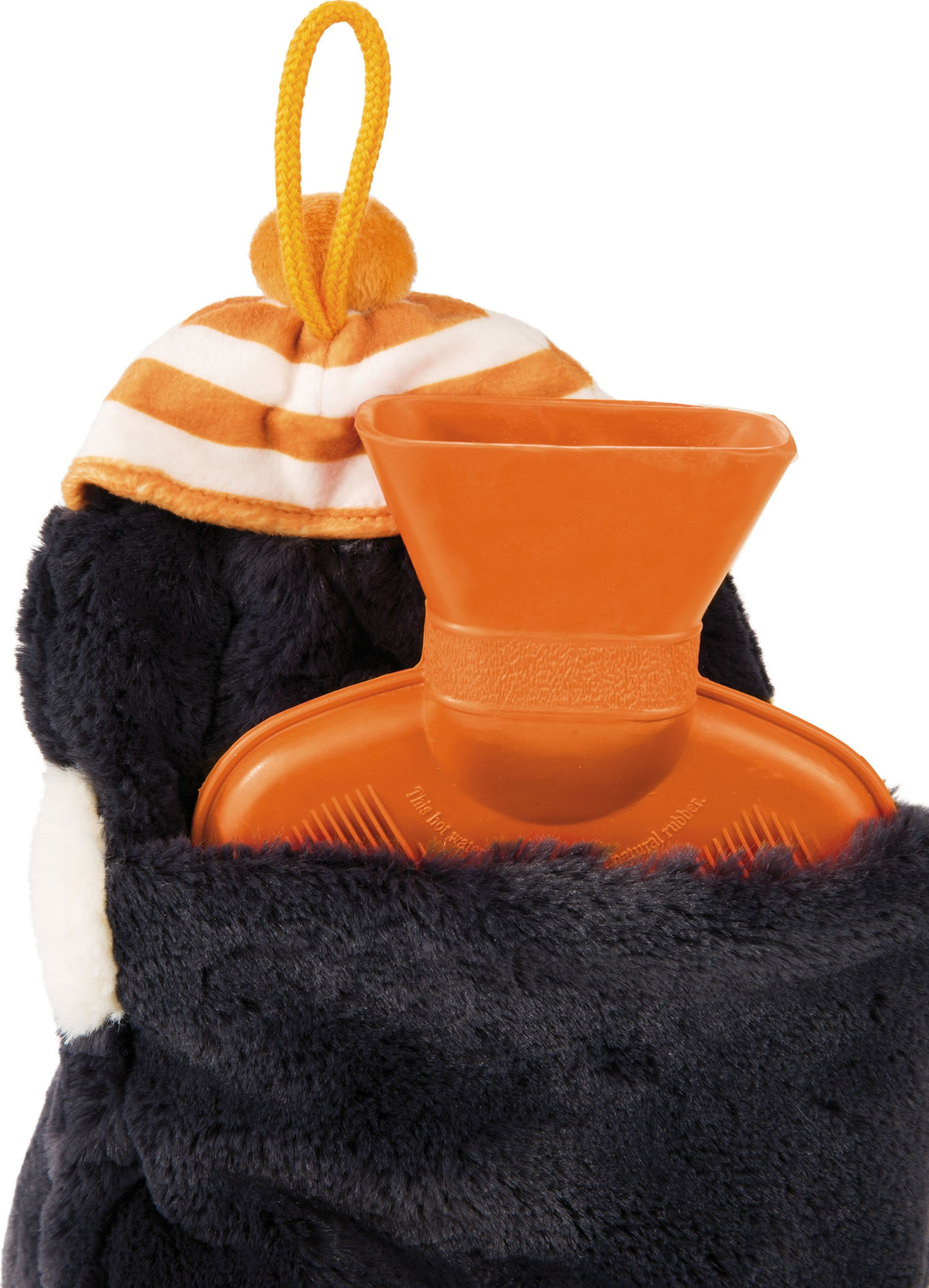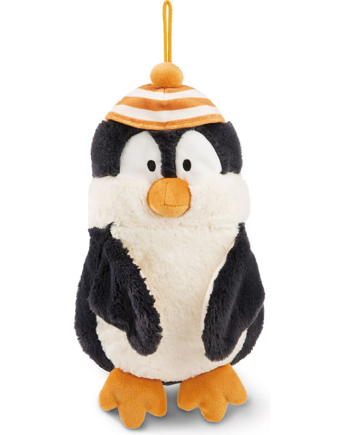 Die weiche Wärmflasche mit dem Pinguin Peppi wärmt dich schnell.