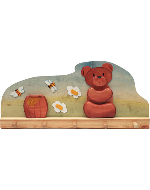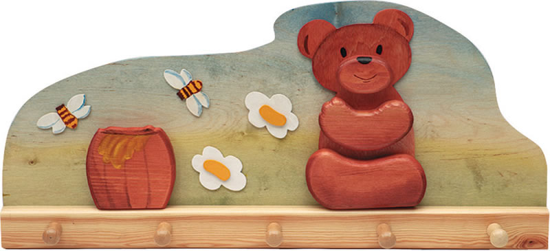 Wunderschöne handgefertigte Garderobe für das Kinderzimmer. Der niedliche Bär und die stimmungsvollen Farben machen sie zu einem Blickfang.