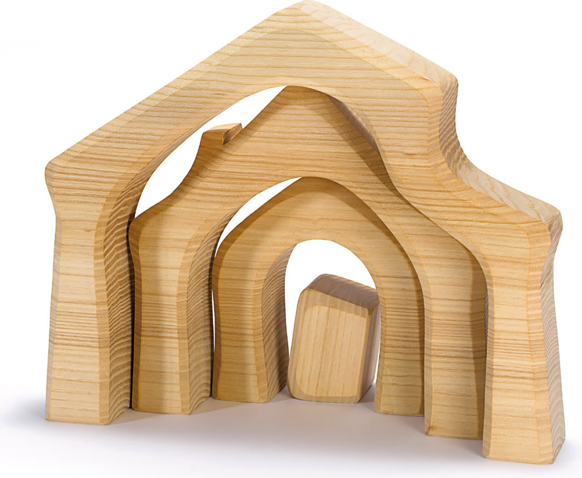 Massives Vollholzprodukt, das als bespielbare Weihnachtskrippe verwendet wird.