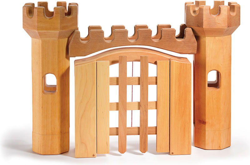 Alle Kinderkram Burgteile sind aus Erlenholz so gerfertigt, dass sie gut miteinander kombinierbar sind.