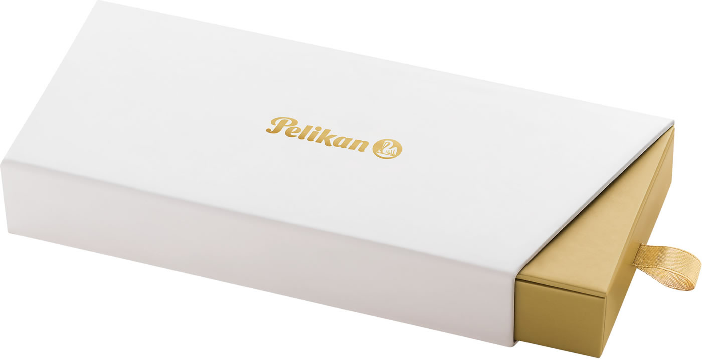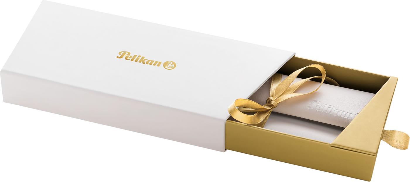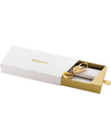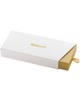 Die Kombination aus leuchtendem gold-marmoriertem Schaftmaterial und weißen Elementen wirkt besonders edel und anmutig. Das gold-marmorierte Material steht perfekt im Einklang mit der vergoldeten Schreibfeder und den Zierelementen.