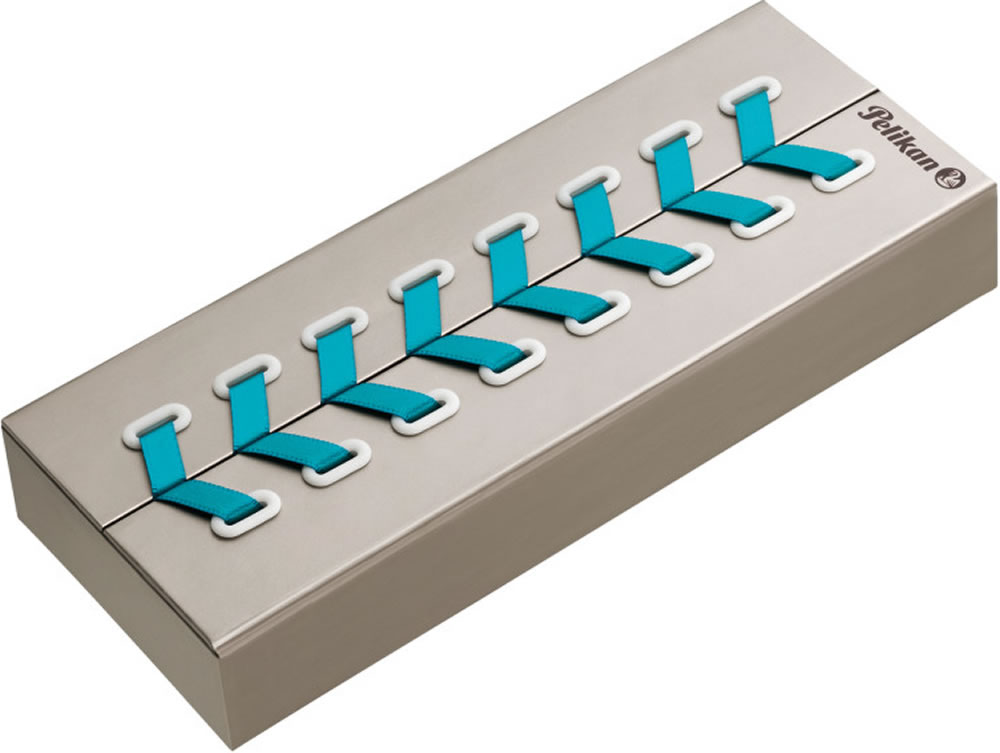 Die Zierringe und der typische Pelikan Schnabelclip sind mit 24-Karat vergoldet. Der Kolbenfüllhalter verfügt über eine 14-karätige zweifarbige Goldfeder, die in den Federstrichbreiten EF, F, M und B erhältlich ist. Der passende Kugelschreiber ist mit einer Drehmechanik ausgestattet. Jedes einzelne Schreibgerät wird von Hand montiert und mit größter Sorgfalt überprüft, um die strengen Qualitätskriterien zu erfüllen. Der Souverän 600 Türkis-Weiß wird in einem exklusiven Geschenketui geliefert und ist in limitierter Auflage erhältlich.