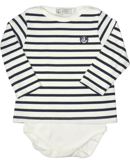 Petit Bateau 2 in 1 Body Langarm im Seemannslook weiß/blau