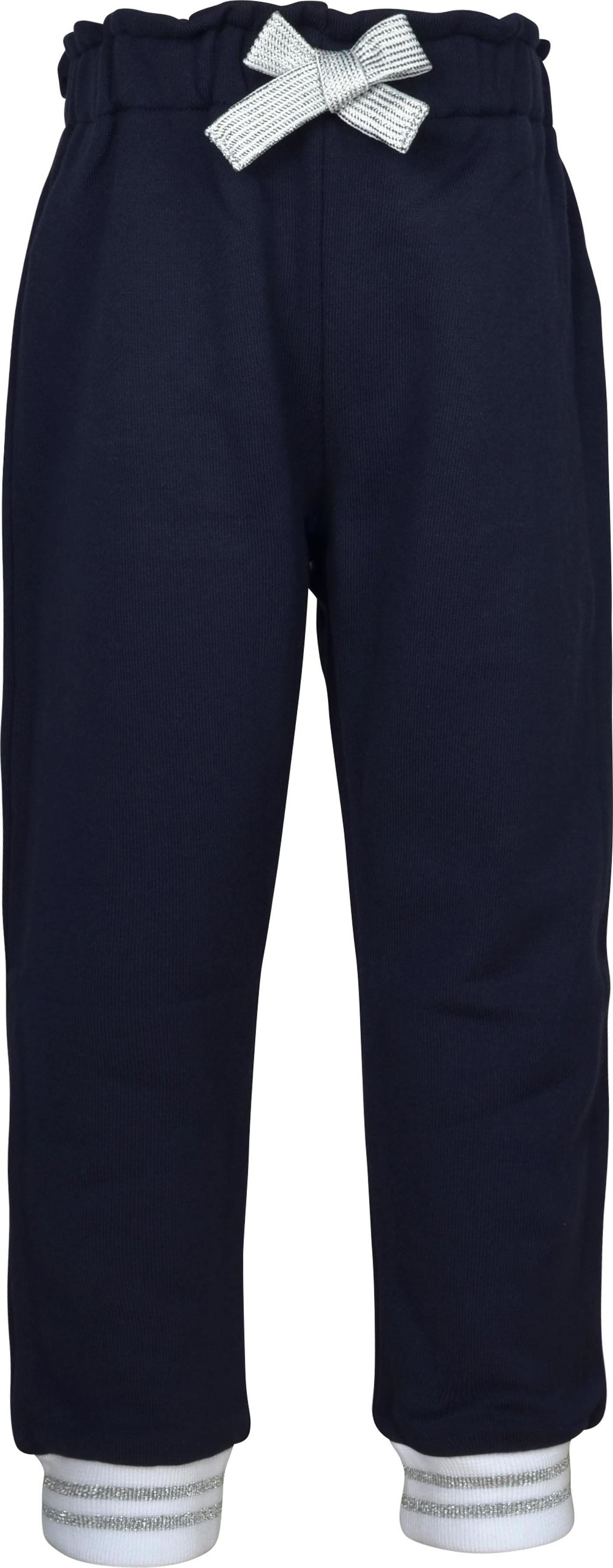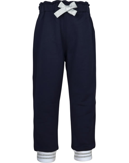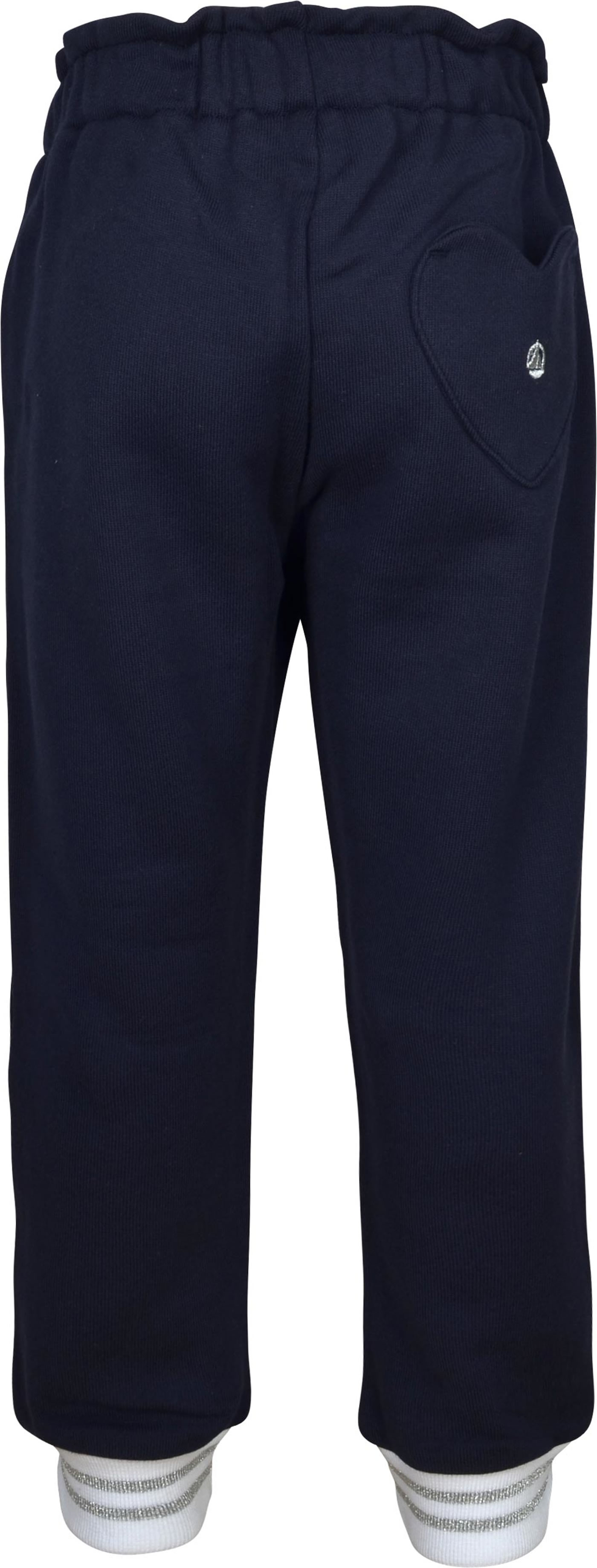 Bequeme Baby-Hose mit in silber gestreiften Rippbündchen an den Beinen von PETIT BATEAU für Mädchen. Im weichen Bund der Jogginghose befindet sich ein dehnbares Gummi. Für einen Blickfang sorgt die schöne glitzernde Deko-Schleife an der Bund-Vorderseite. Von innen warm angeraut ist die dunkelblaue Hose ein tolles Kleidungsstück für die kalte Jahreszeit.