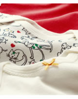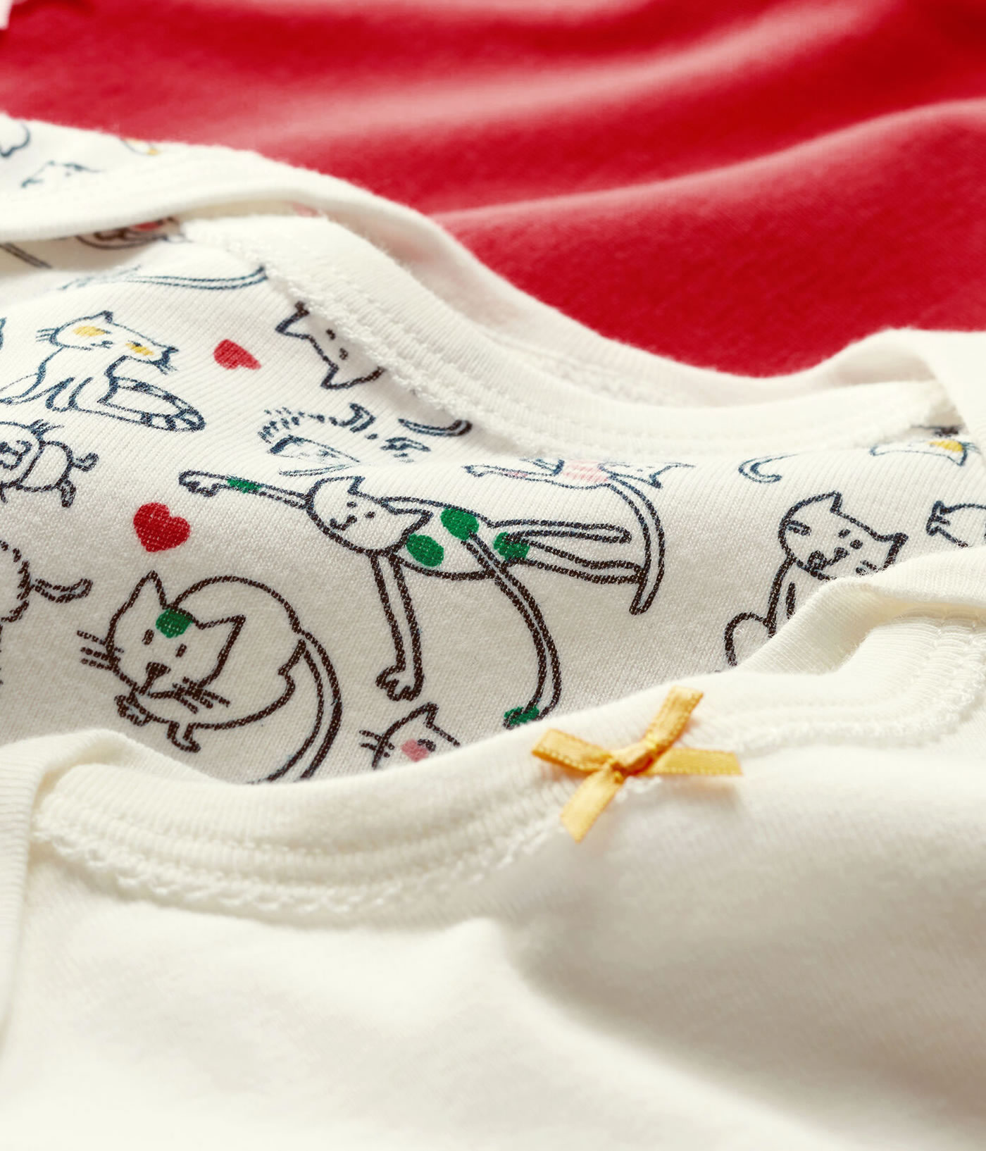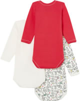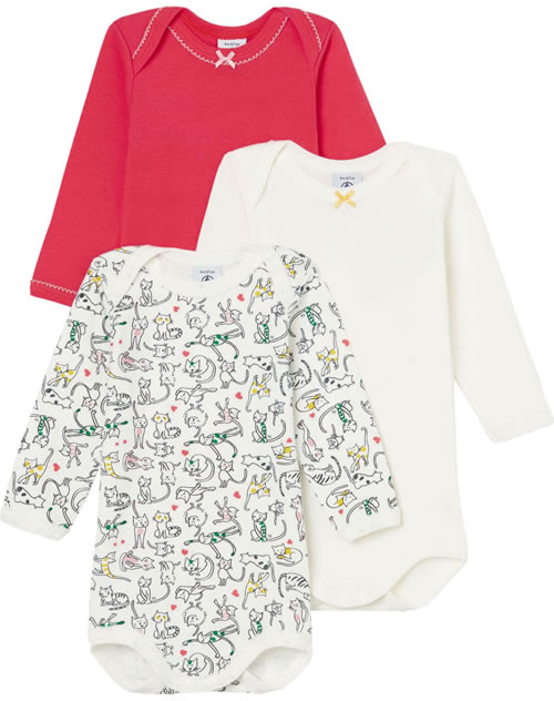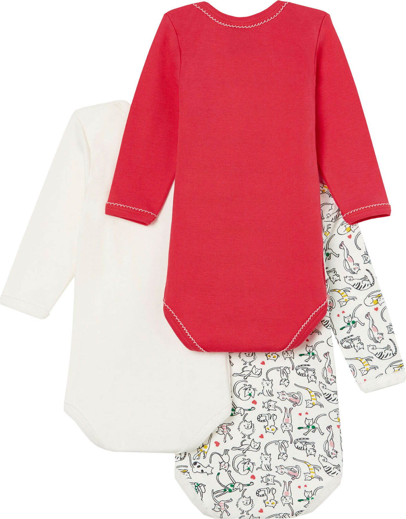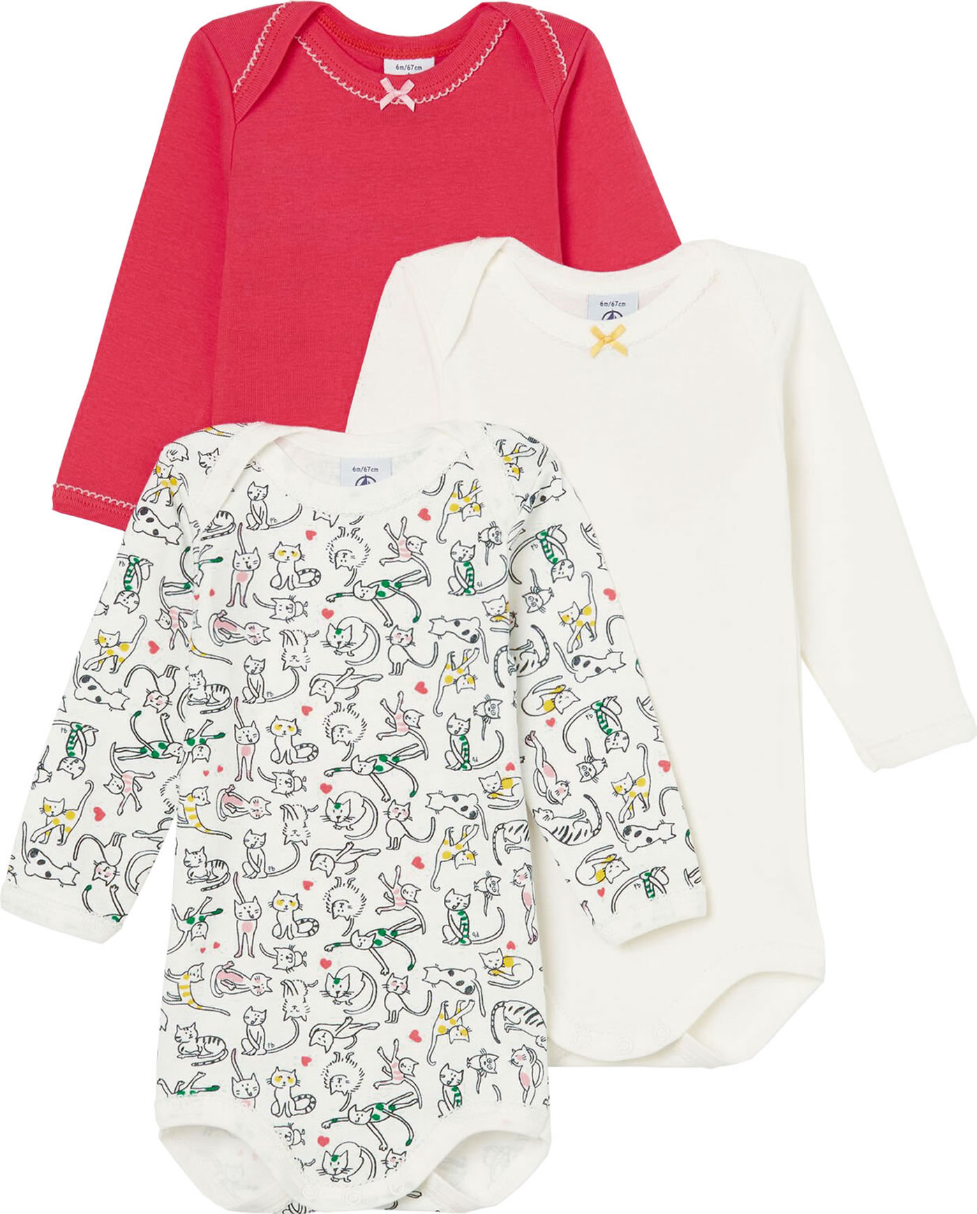 Petit Bateau Body Langarm 3er Set Uni Katzen rot/weiß