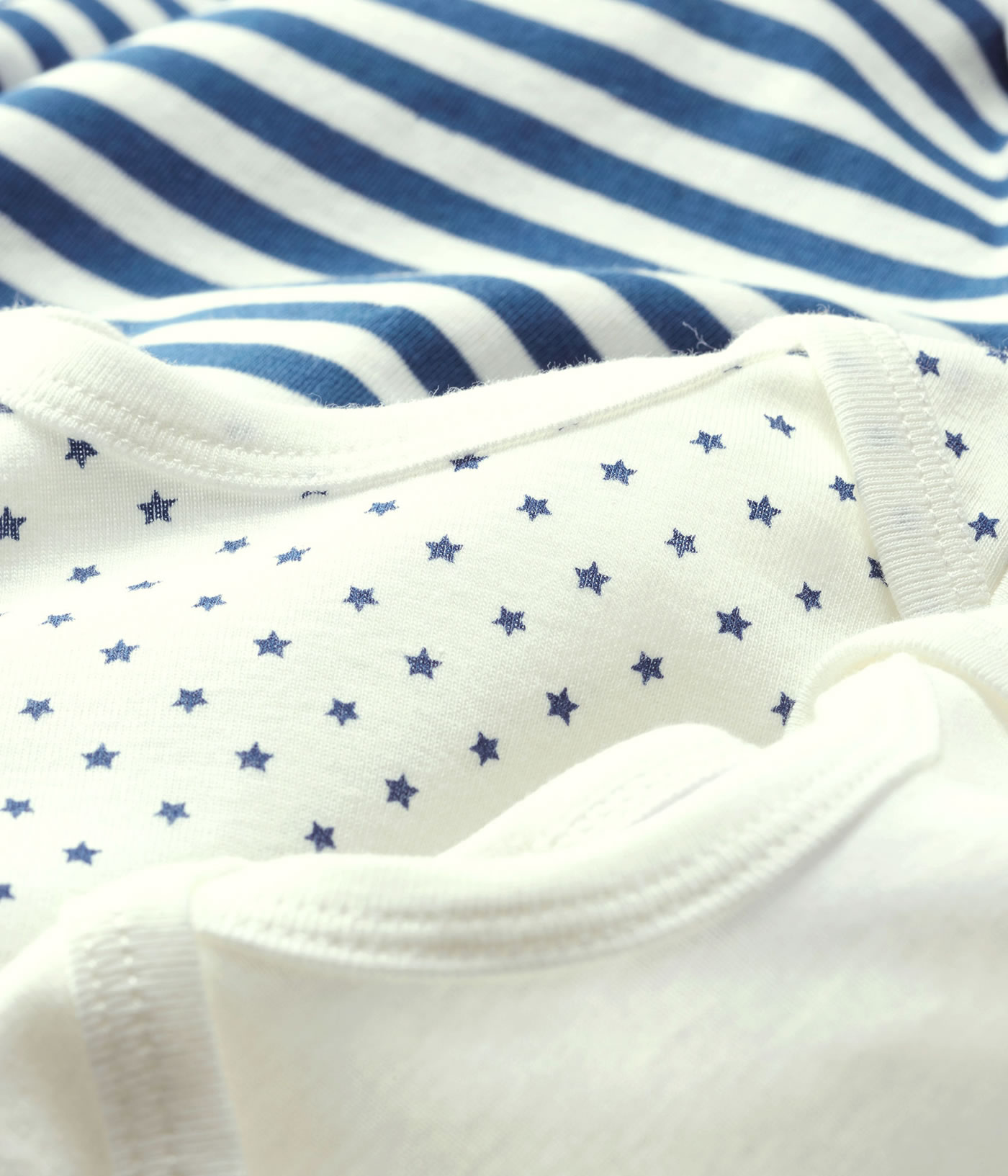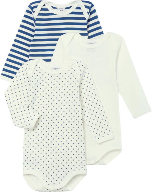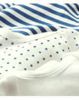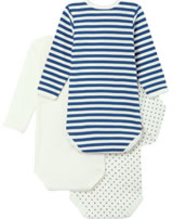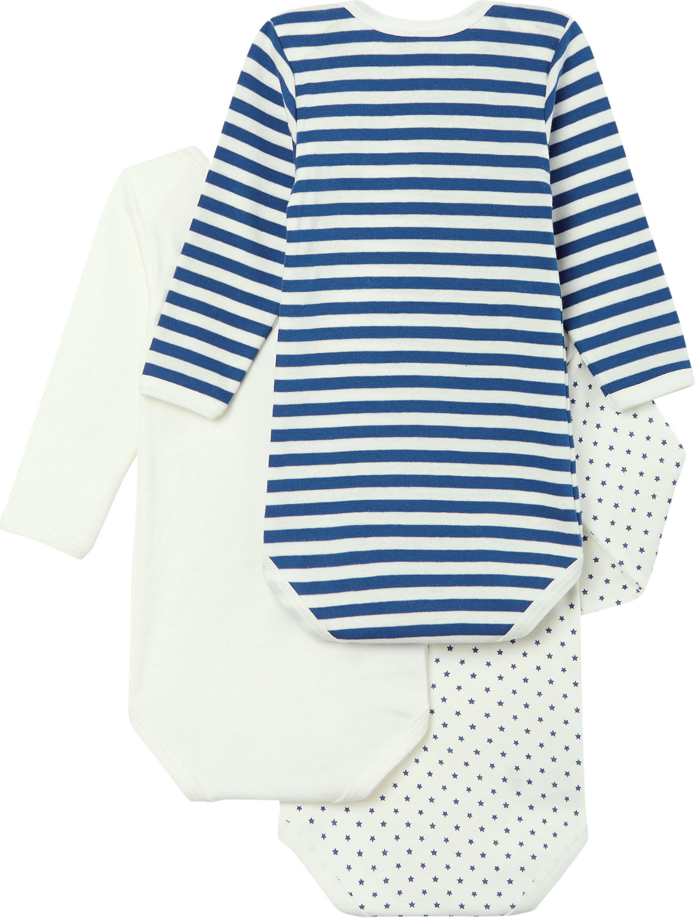 Petit Bateau Body Langarm 3er Set Uni Sterne Streifen creme/blau