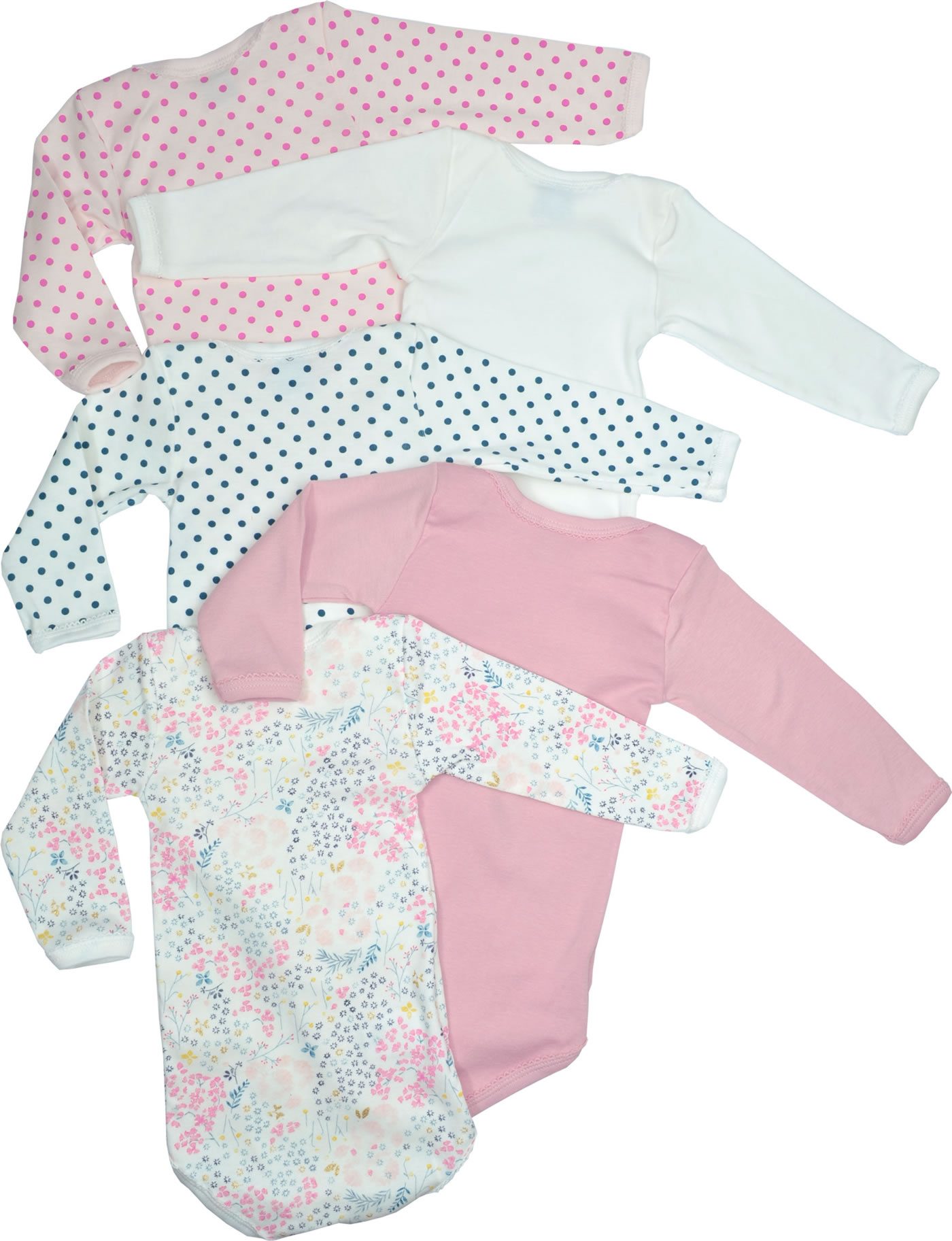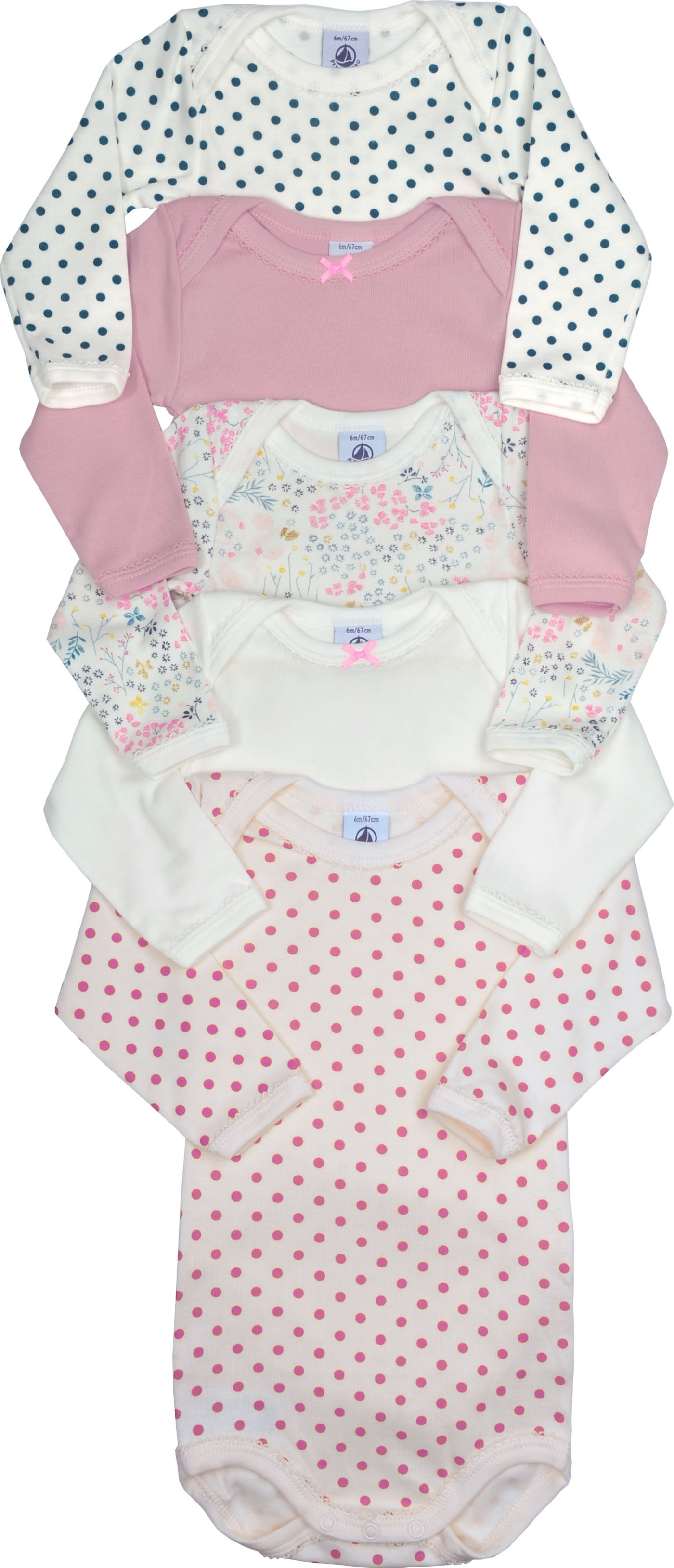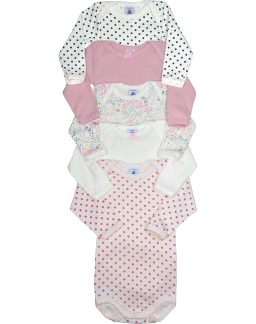 Petit Bateau Body Langarm 5er Set Blumen Punkte rosa/weiß