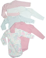 Dieses klassische Body-Set für Mädchen von PETIT BATEAU darf in keiner Baby-Erstausstattung fehlen! Es enthält fünf Bodys in Uni und mit hübschem Punkte- und Blumenmuster gearbeitet. Praktische Details wie der Schlupf-Ausschnitt und die Druckknöpfe im Schritt erleichtern das An- und Ausziehen. Eine hübsche Schleife ziert den Halsausschnitt der beiden einfarbigen Bodys. Das Set ist ein schönes Geschenk zur Geburt, da es in einer hübschen Box geliefert wird.