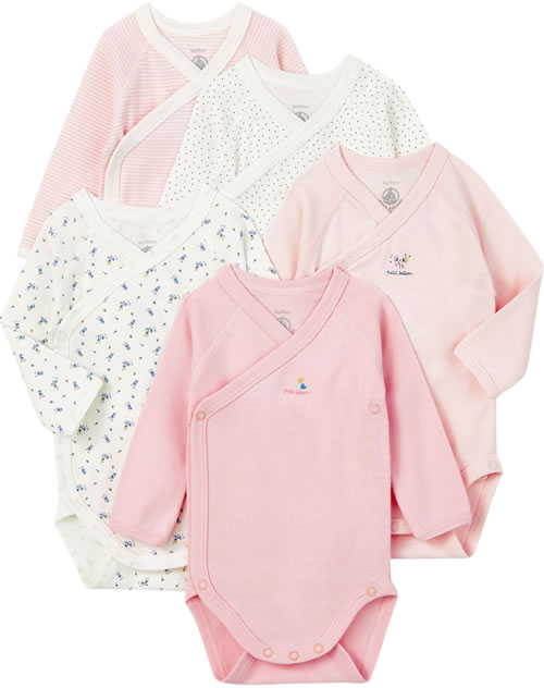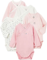 Petit Bateau Wickel-Body Langarm 5er Set für Mädchen LAMAR rosa/weiß
