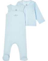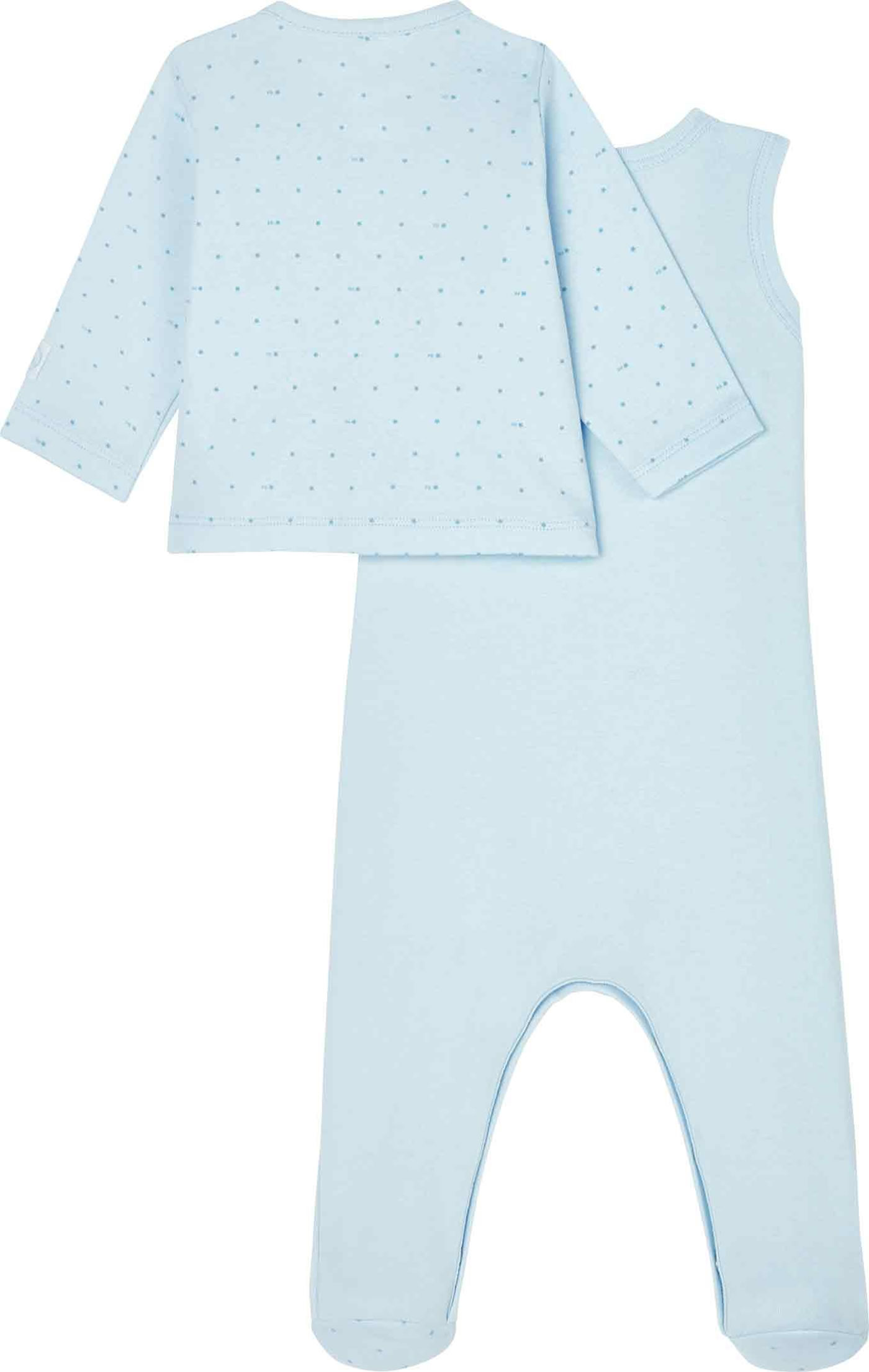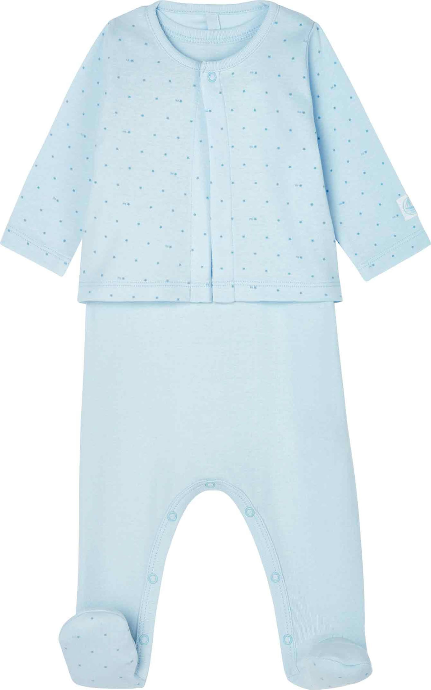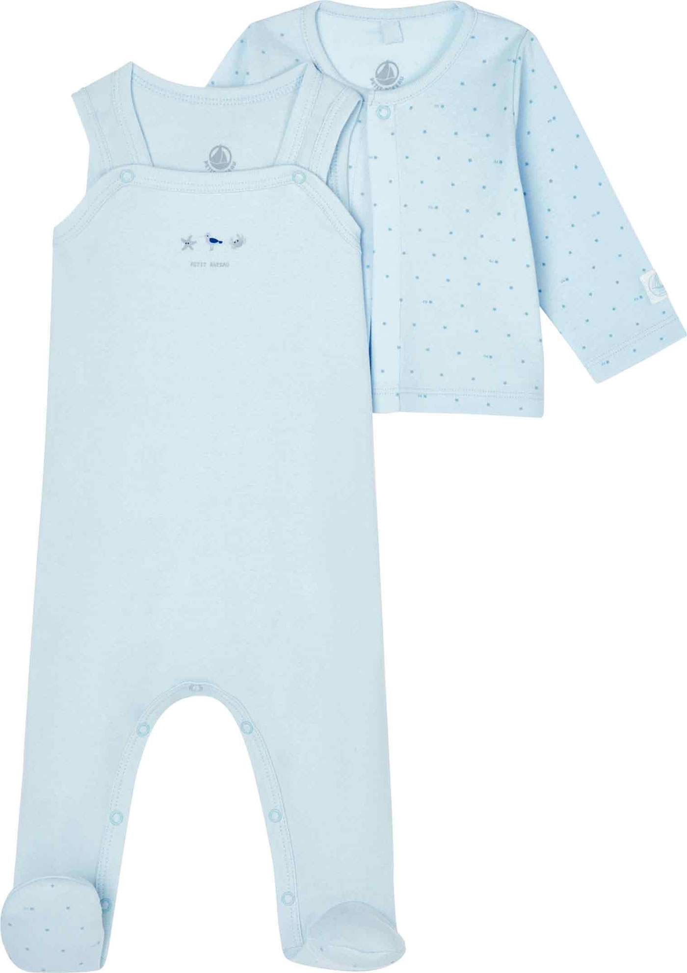 Schönes Set mit Strampler und passendem Jäckchen aus Baumwolle in blau von PETIT BATEAU für Jungen.