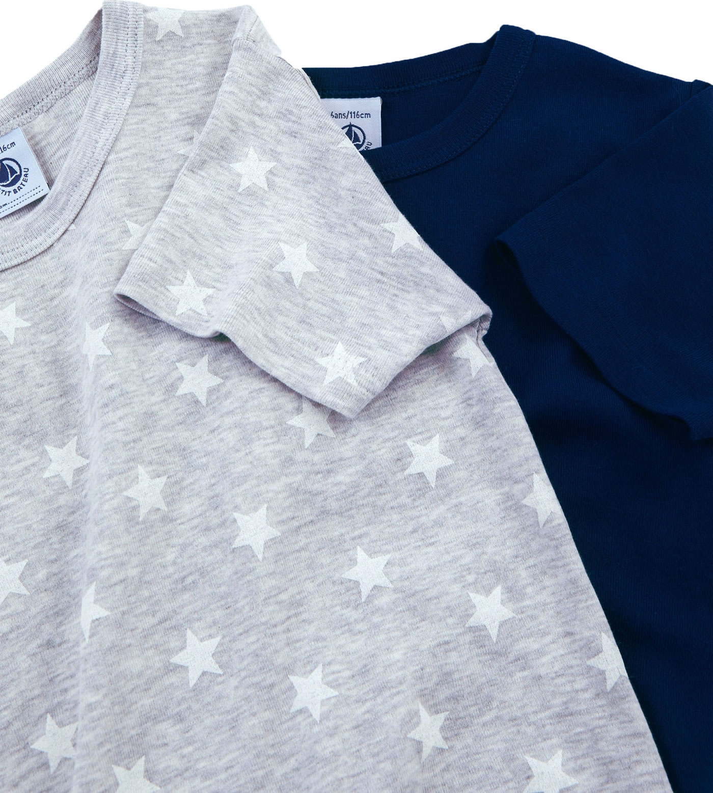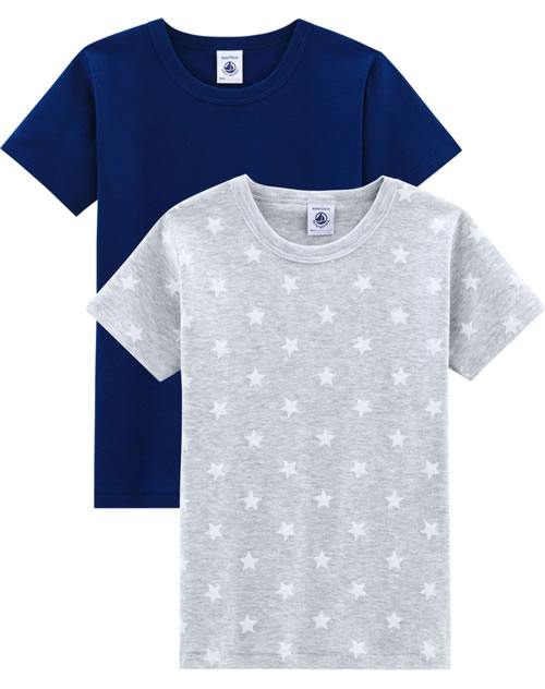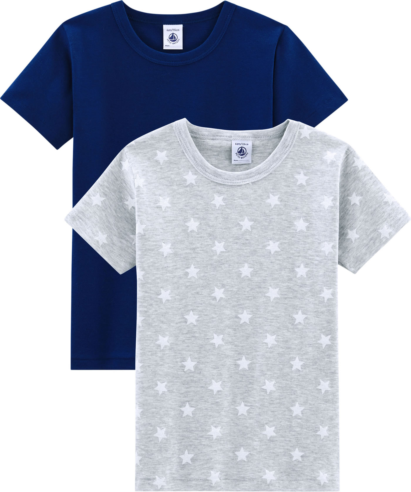 Petit Bateau Jungen-Unterhemden T-Shirts 2er Set Sterne Uni grau/blau