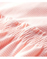 Hübsches Sommerkleid in 1x1-Milleraies-Rippung und mit Rüschenärmel von PETIT BATEAU. Ein schönes Detail ist der gesmokte Gürtel an der Taille. Am Rücken befindet sich eine Öffnung mit Druckknöpfen. Das kleine Segelboot-Logo in pink befindet sich auf der Vorderseite am Saum des farbenfrohen Kleides.